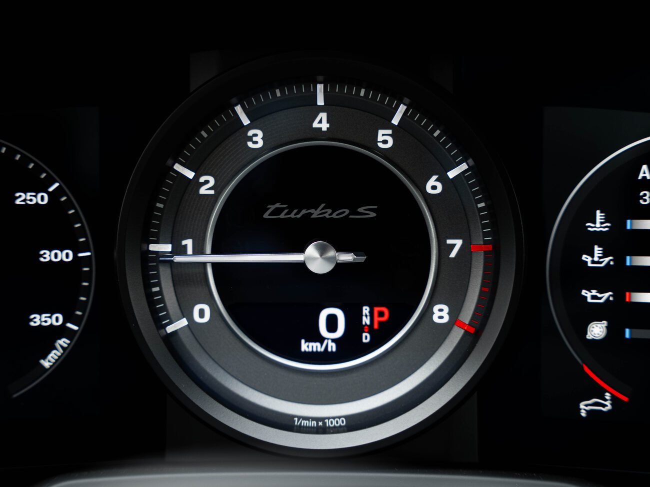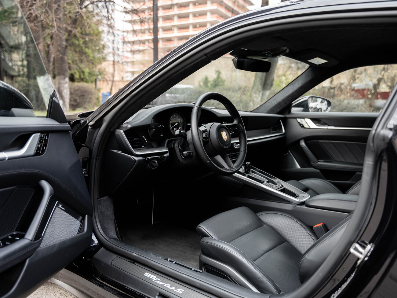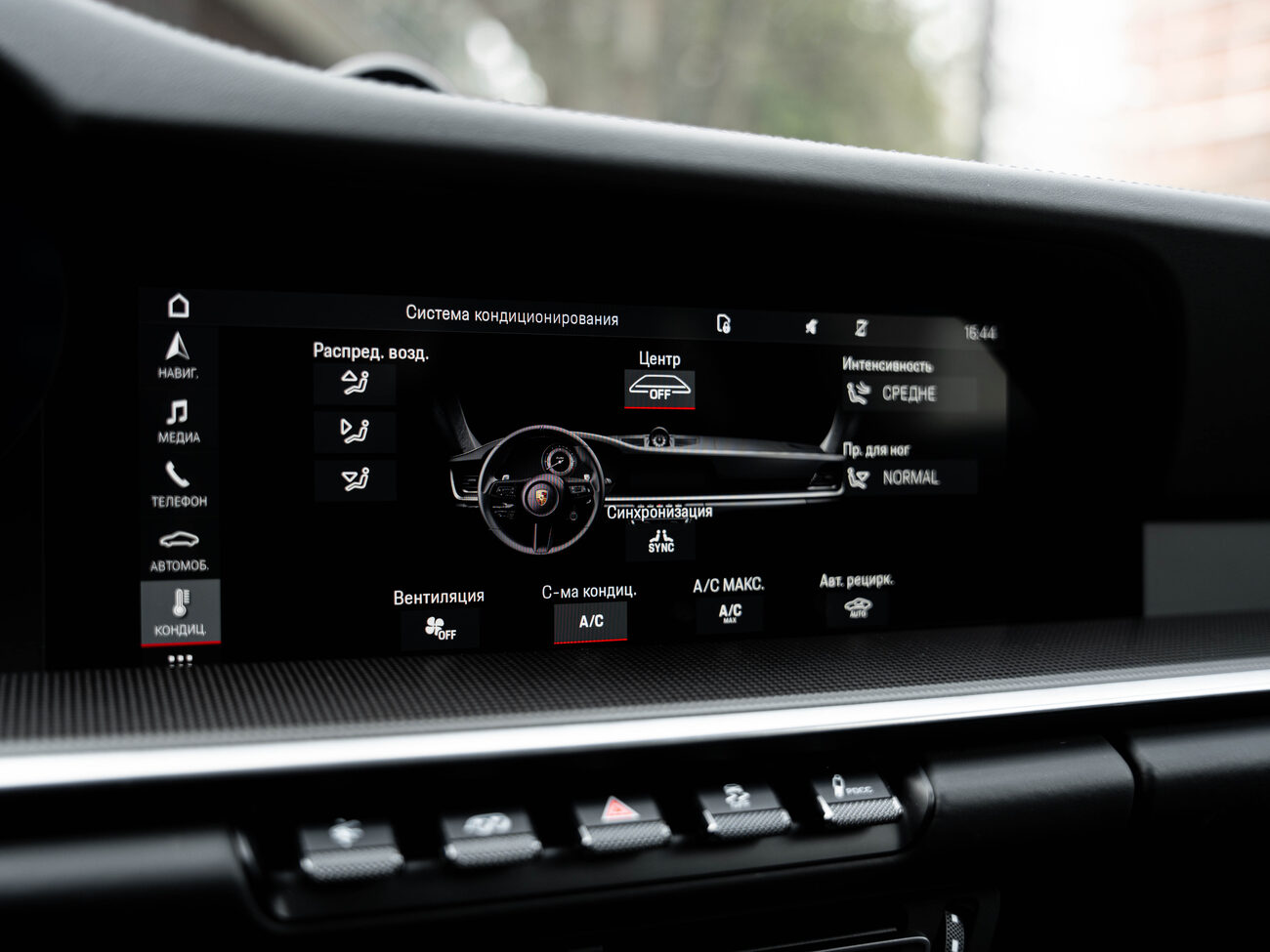 Комплектация: светодиодные фары Matrix-Beam, легкосплавные диски 9J x 20 спереди, 11 1/2J x 21 сзади, аудиосистема Burmester, пакет Sport-Chrono Plus, адаптивный круиз-контроль High End с Inno Drive, ассистент смены полосы движения, полная отделка кожей, головное устройство Premium (Gen2), 18-позиционная регулировка сидений с электроприводом для обоих передних сидений, сиденье водителя с функцией памяти, вентиляция передних сидений, вставки декоративный алюминий/углепластик, потолочная панель Alcantara, светодиодный комбинированный задний фонарь, центральный замок "Keyless-Entry", задняя главная передача с межколёсной блокировкой, спортивная ходовая часть со стабилизацией крена и многое другое.