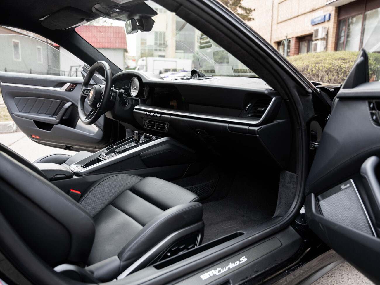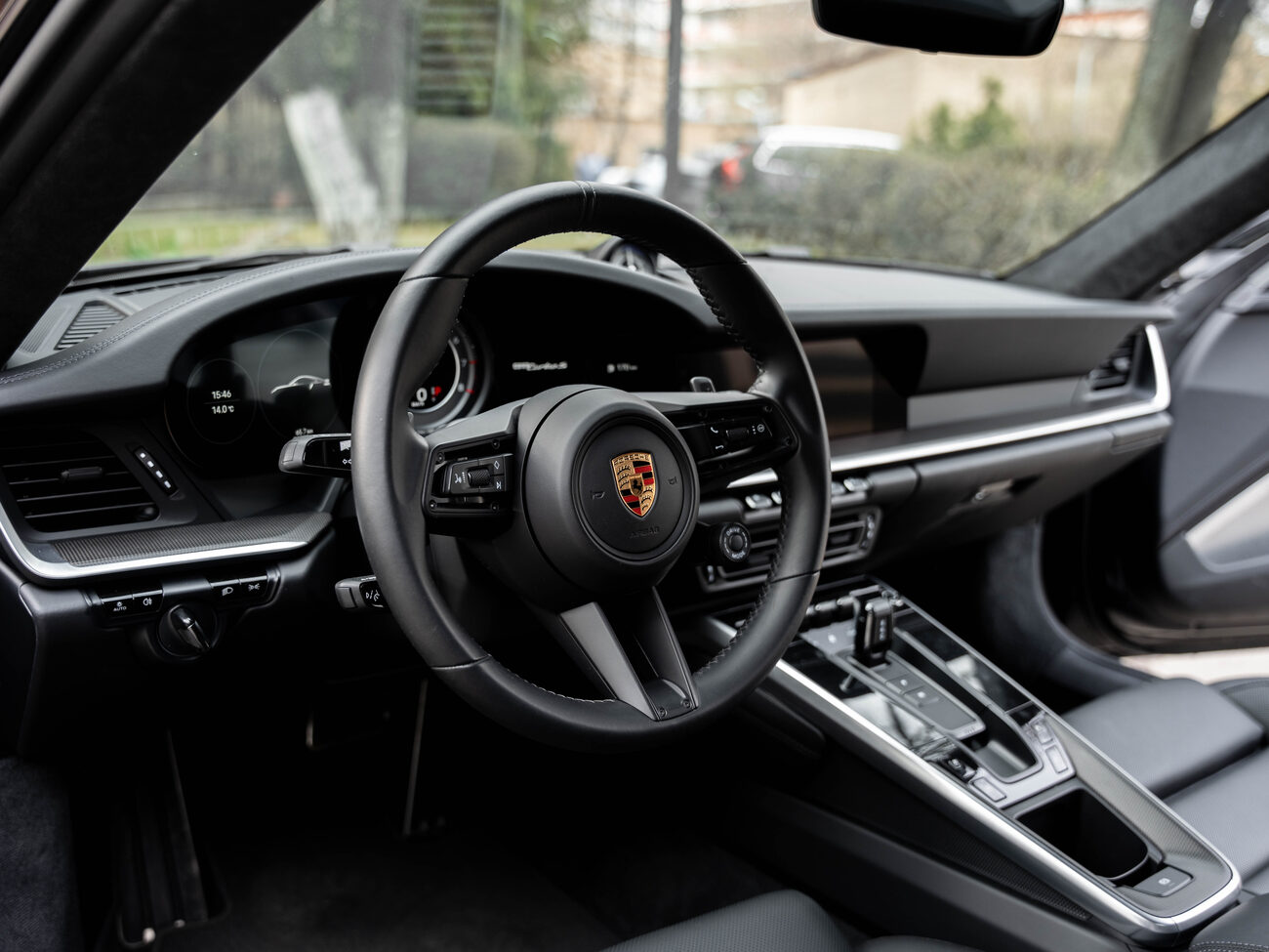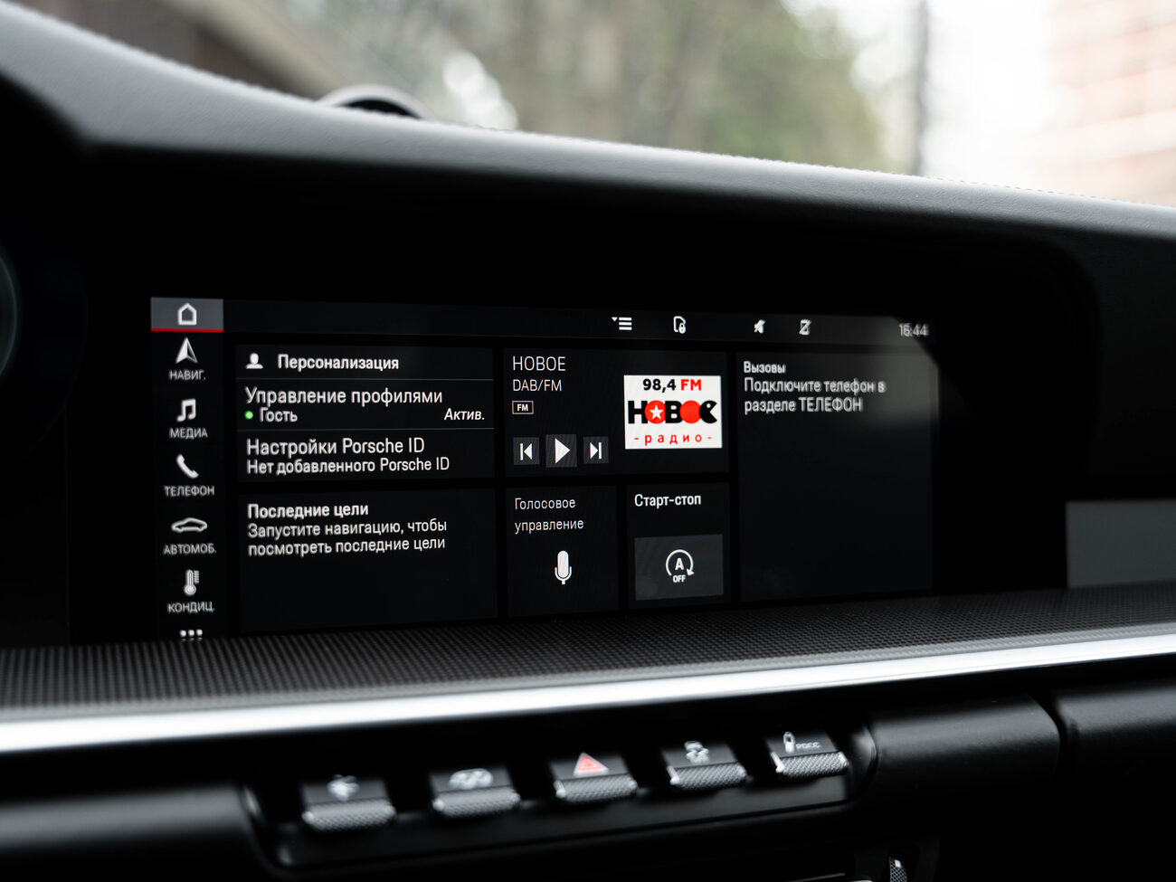 Комплектация: светодиодные фары Matrix-Beam, легкосплавные диски 9J x 20 спереди, 11 1/2J x 21 сзади, аудиосистема Burmester, пакет Sport-Chrono Plus, адаптивный круиз-контроль High End с Inno Drive, ассистент смены полосы движения, полная отделка кожей, головное устройство Premium (Gen2), 18-позиционная регулировка сидений с электроприводом для обоих передних сидений, сиденье водителя с функцией памяти, вентиляция передних сидений, вставки декоративный алюминий/углепластик, потолочная панель Alcantara, светодиодный комбинированный задний фонарь, центральный замок "Keyless-Entry", задняя главная передача с межколёсной блокировкой, спортивная ходовая часть со стабилизацией крена и многое другое.