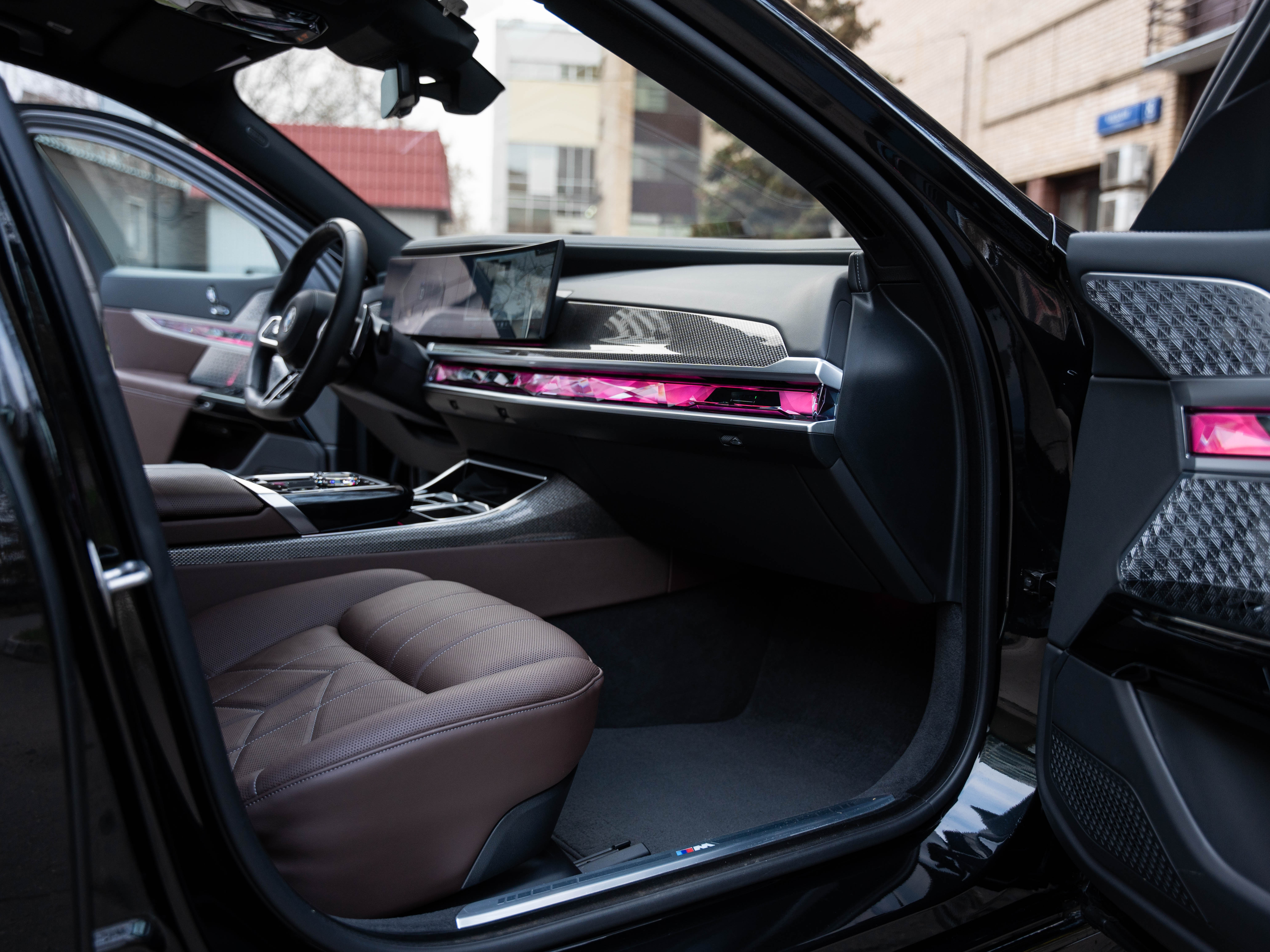 Комплектация: M Спортивный пакет Pro, М Спортивный экстерьер, салон Executive Lounge Seating, мультифункциональные сиденья впереди и сзади с вентиляцией и массажем, музыкальная система Bowers & Wilkins Diamond Surround S, Individual Hochglanz Shadow Line снаружи, фары Bmw Crystal Headlights Iconic Glow, Integral Active Steering, M спортивный тормоз черный глянцевый, панорама Sky Lounge, ассистент движения Driving Assistant Professional, солнцезащитные жалюзи, вставка салона карбон Individual Interior Trim With Silver Threads/piano Black, 21" М аэродинамические разноширокие колеса 909м многоцветный 3d-глянцевый Jetblack, сцепное устройство и многое другое.