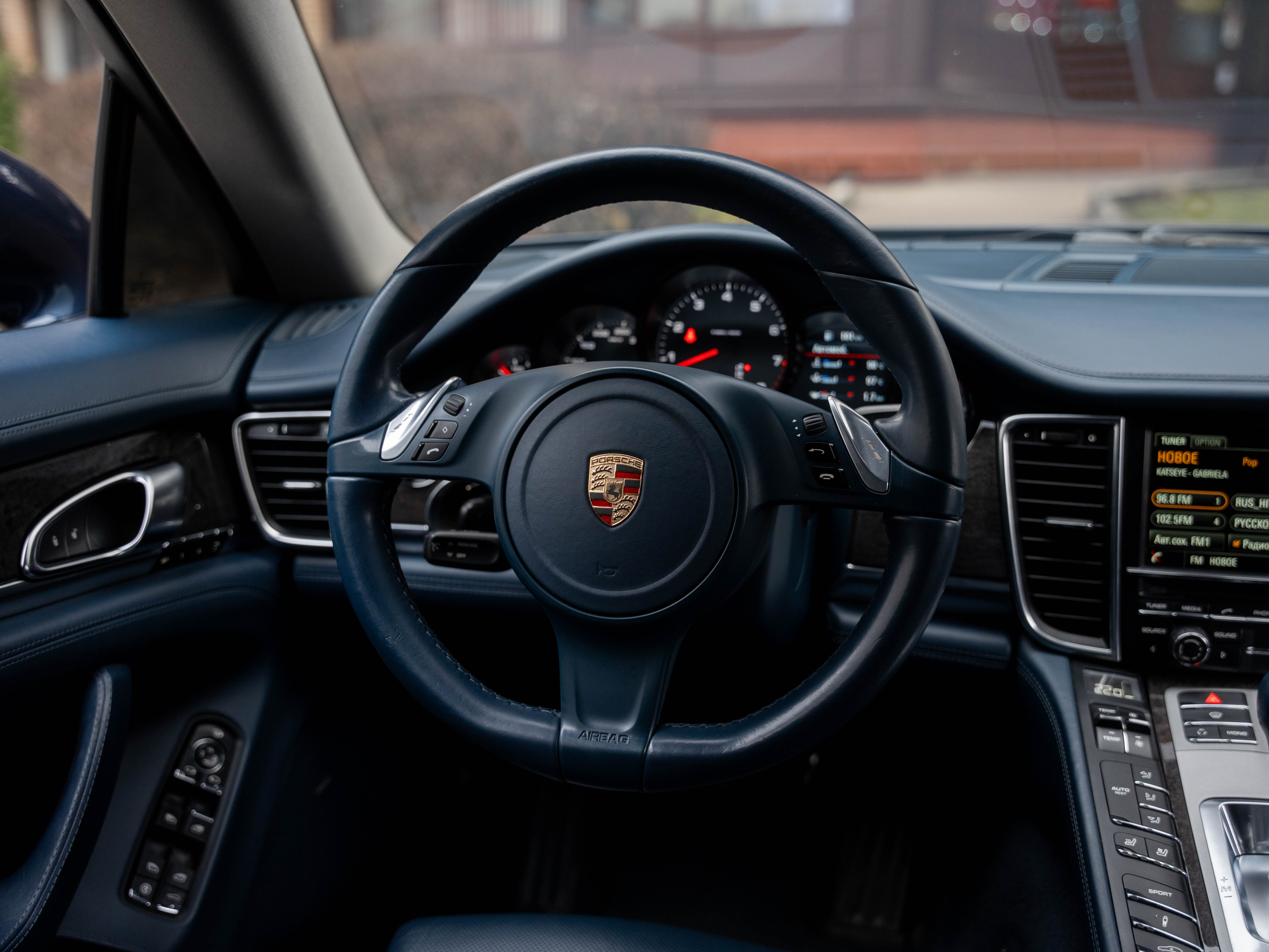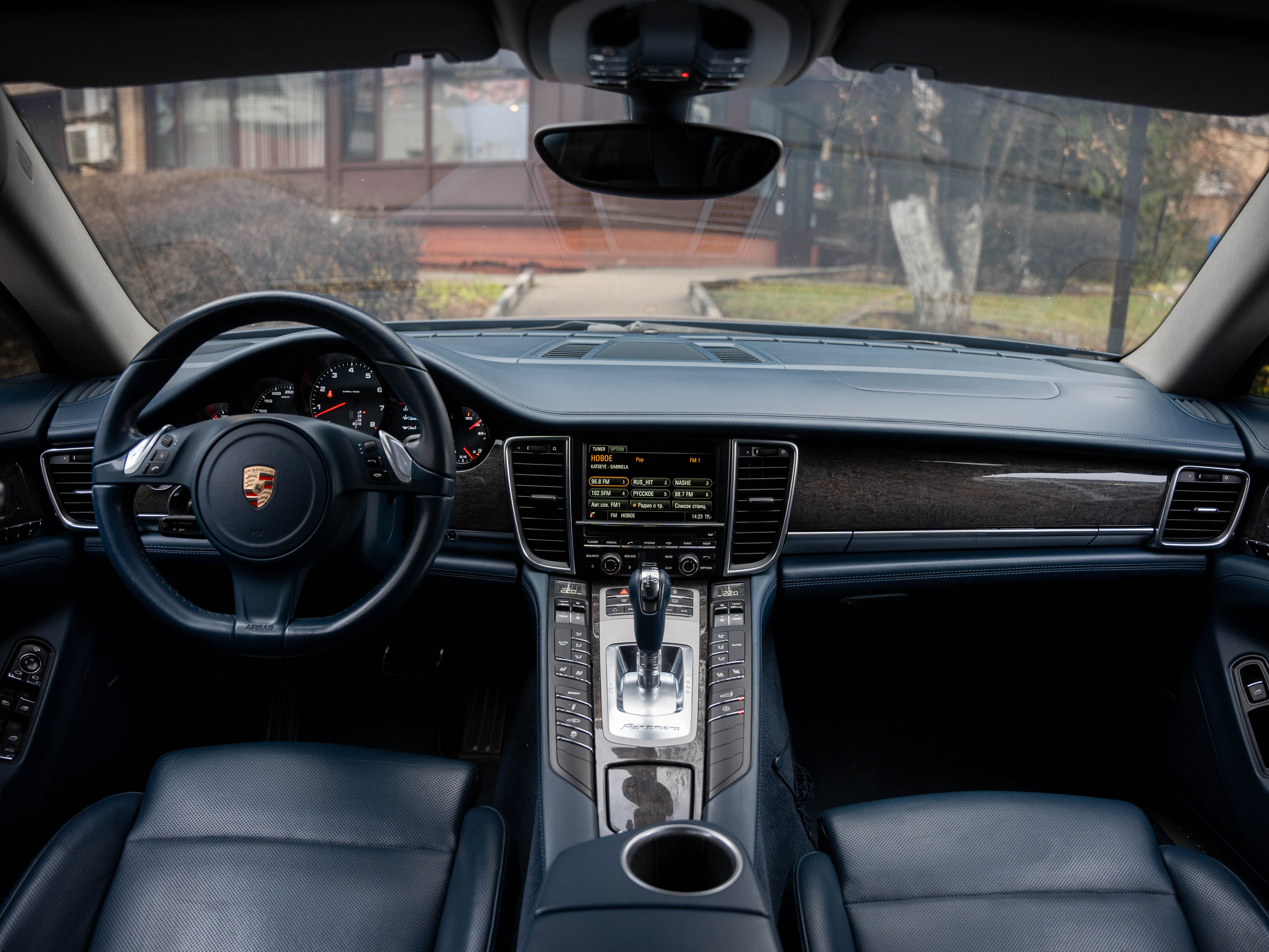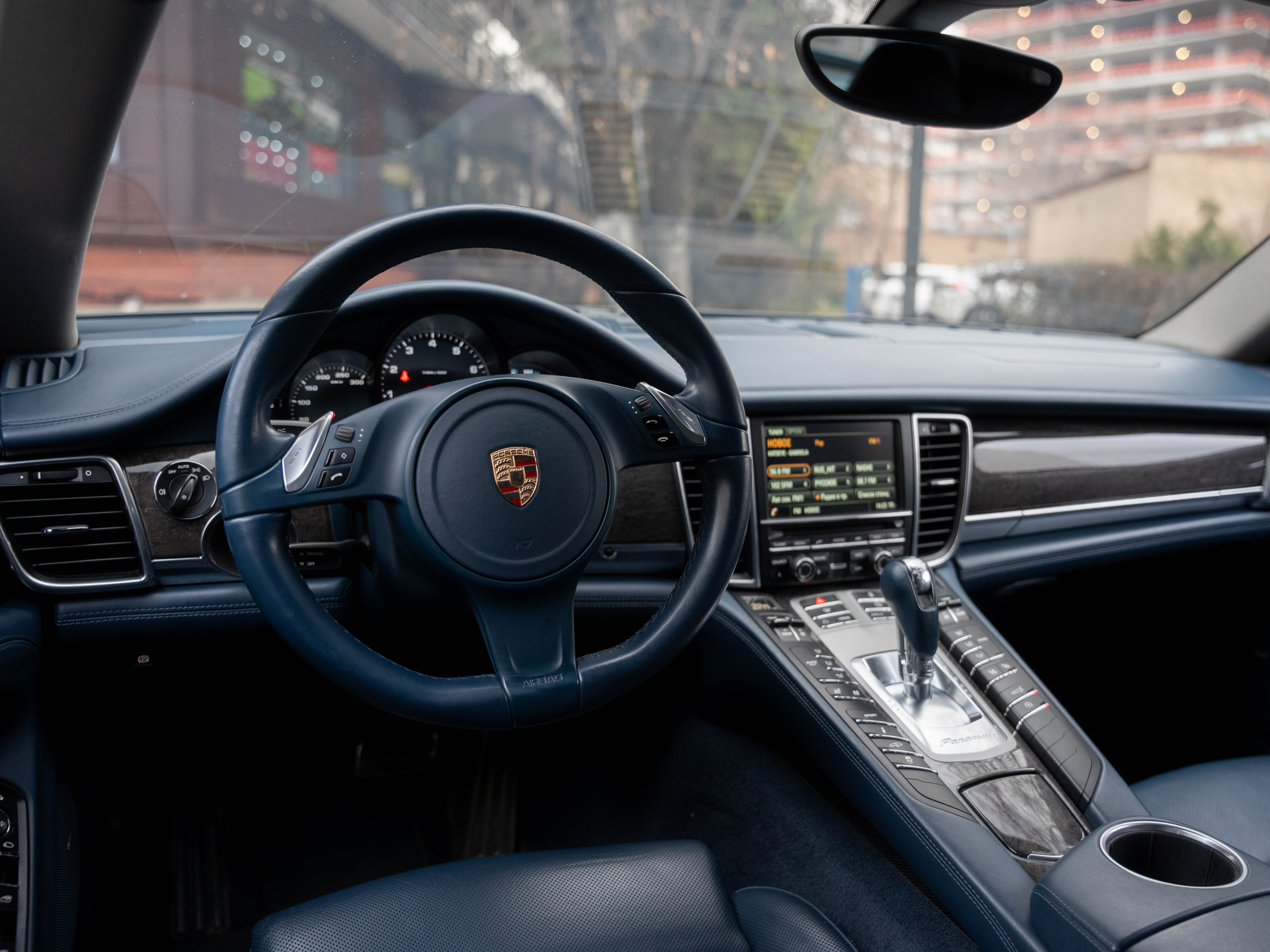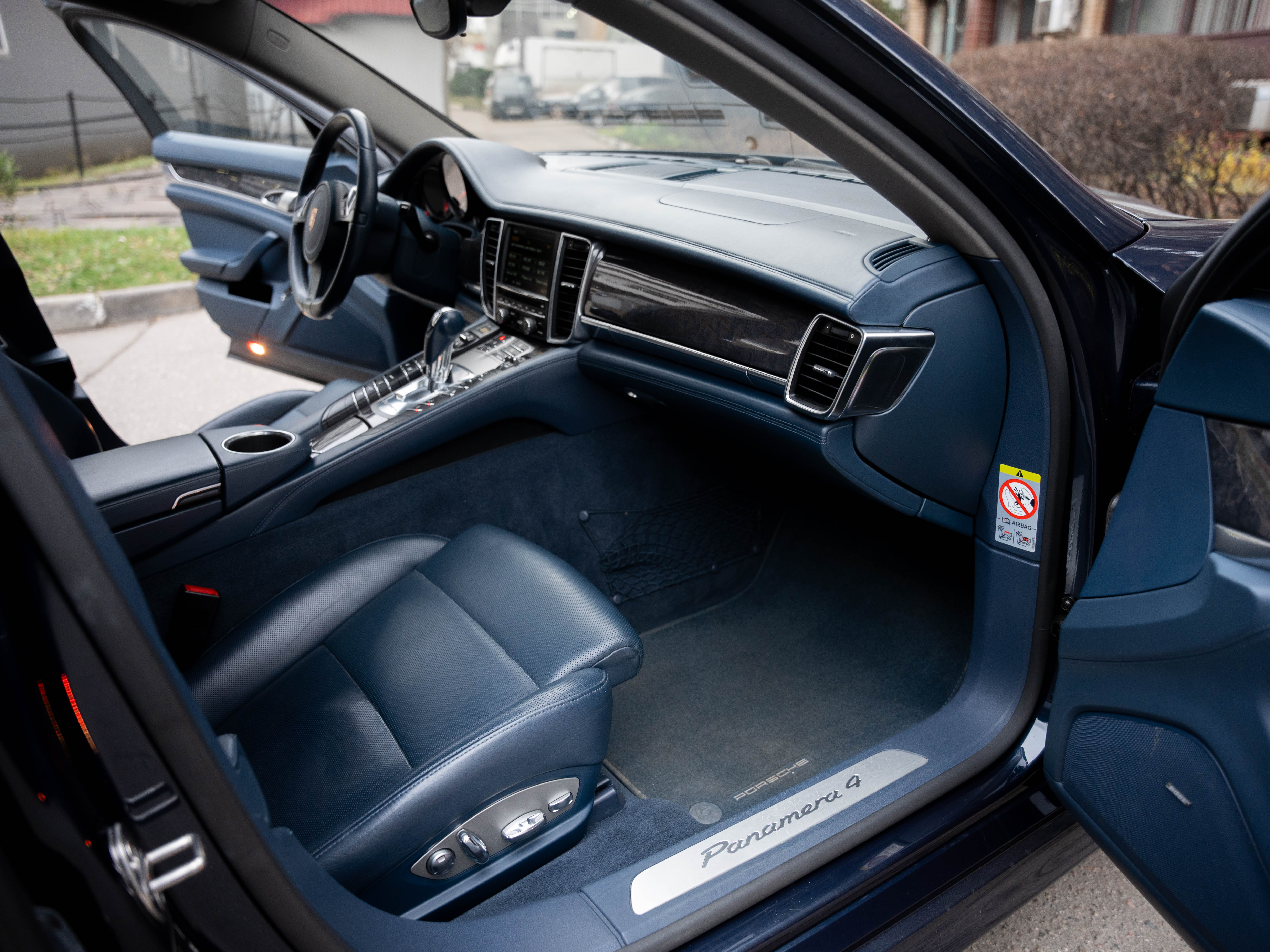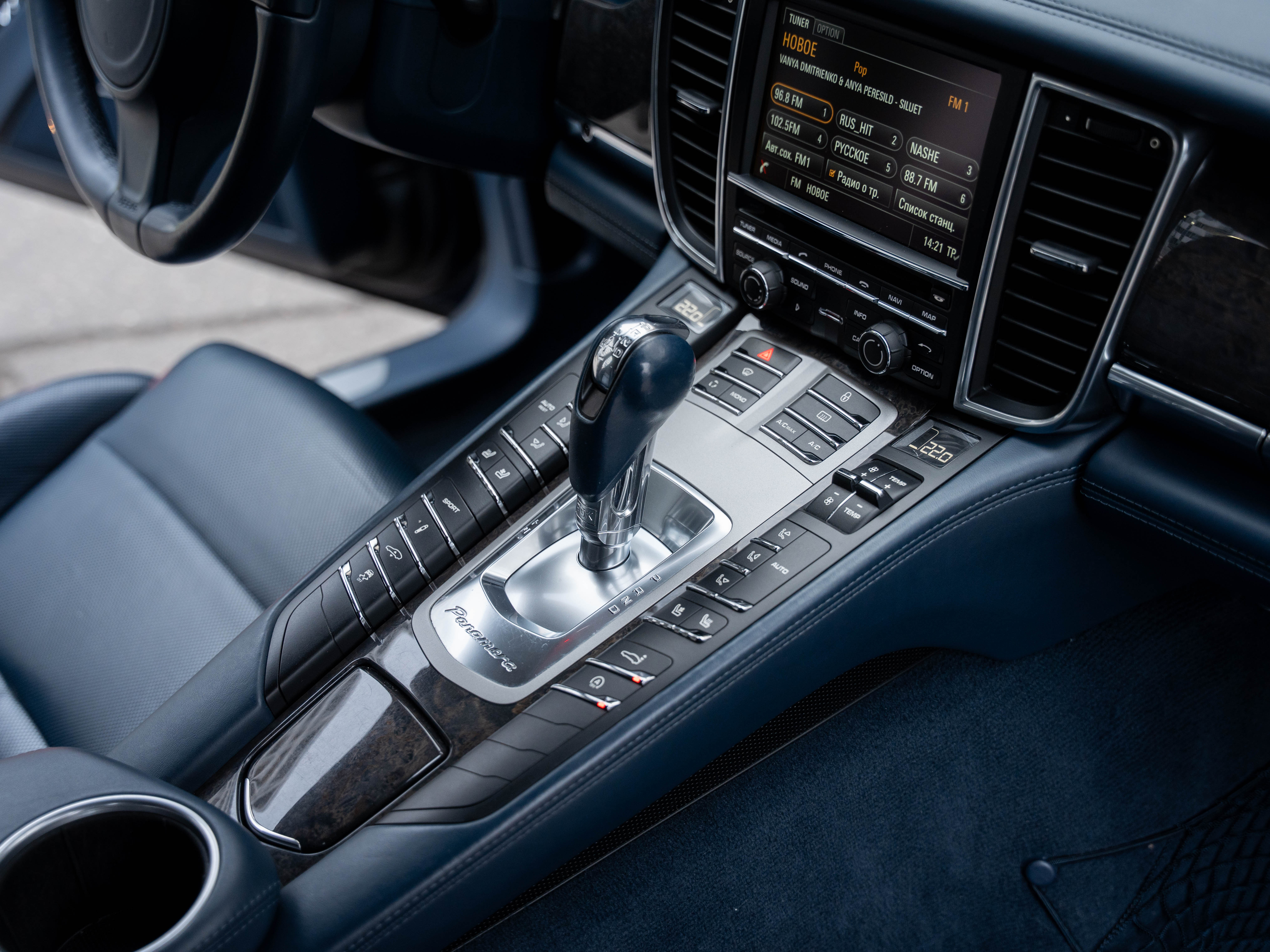 Комплектация: Парк. ассистент спереди, сзади и камера заднего, автоматич. круиз-контроль, динамические ксеноновые фары, активная вентиляция передних сидений, подогрев сидений, многофункциональное рулевое колесо, рулевая колонка с электрической продольной и вертикальной регулировкой, с памятью, колеса в стиле Panamera Turbo 19", черные циферблаты приборов, коробка передач PDK (двойное сцепление), датчик дождя, обогрев рулевого колеса, пневматическая подвеска, комфортные 14-ти позиционные сидения, система Porsche Stability Management (PSM), Датчик крена, аудиосистема BOSE, доводчики дверей, бесключевой доступ и многое другое.