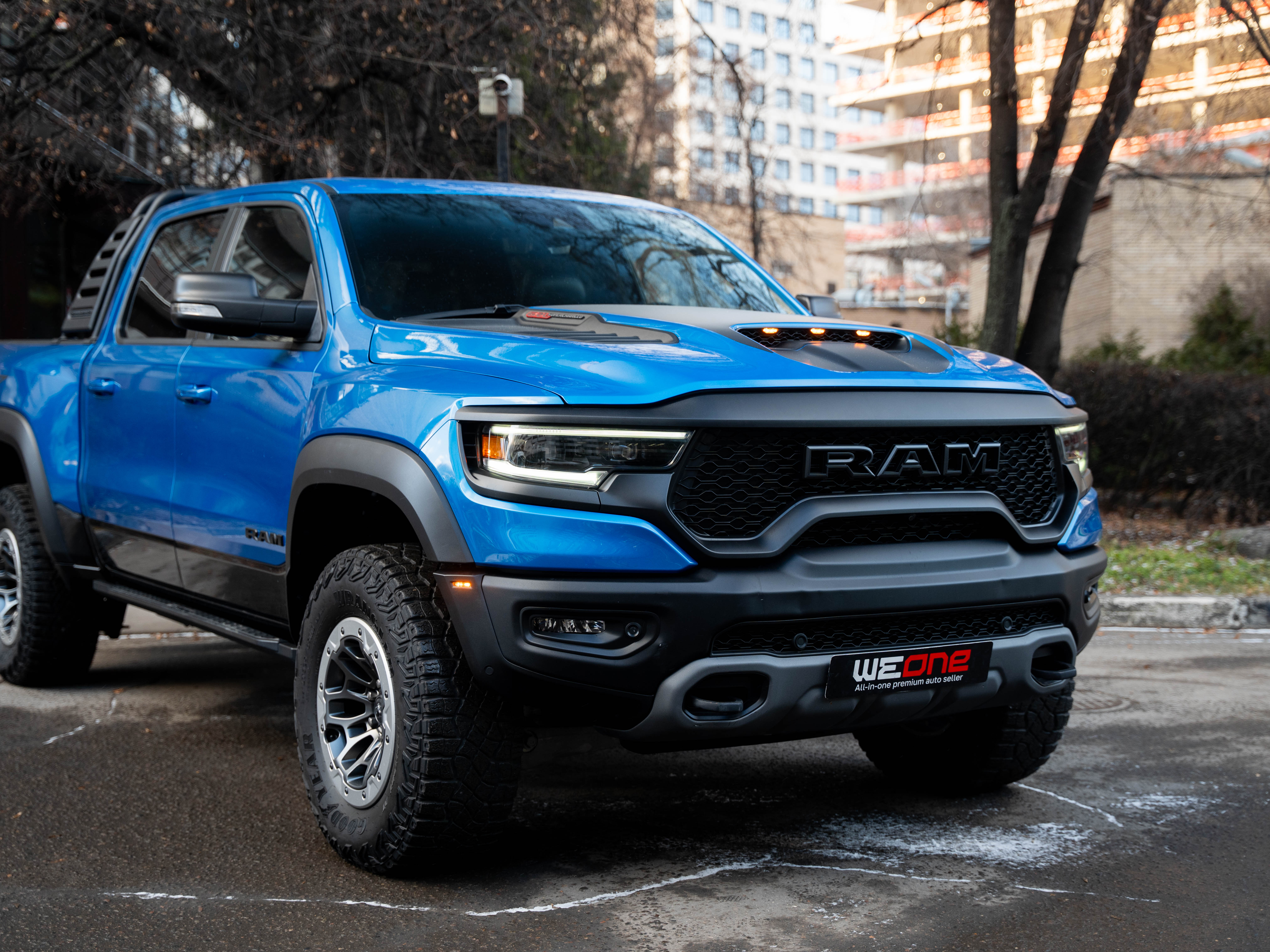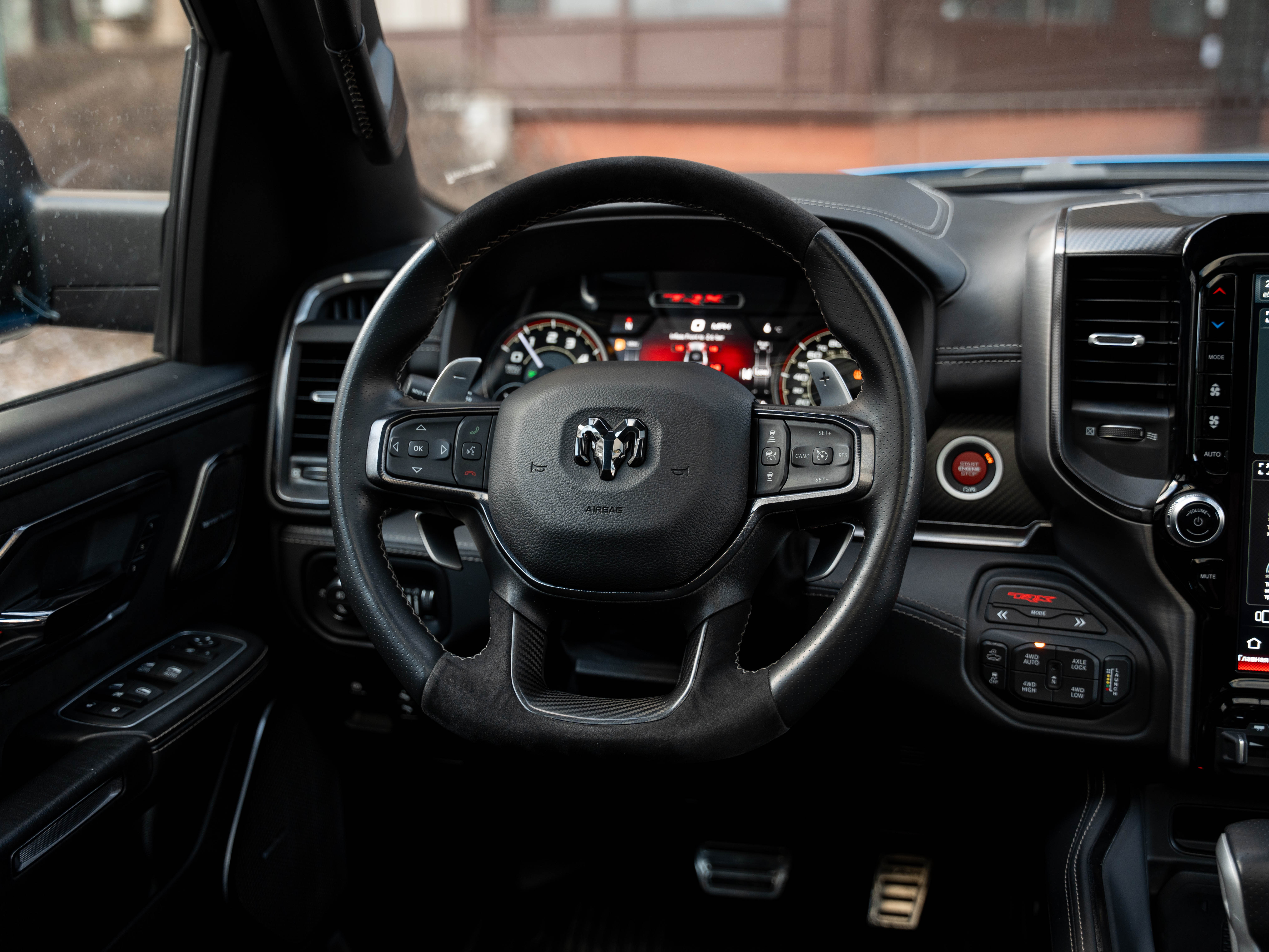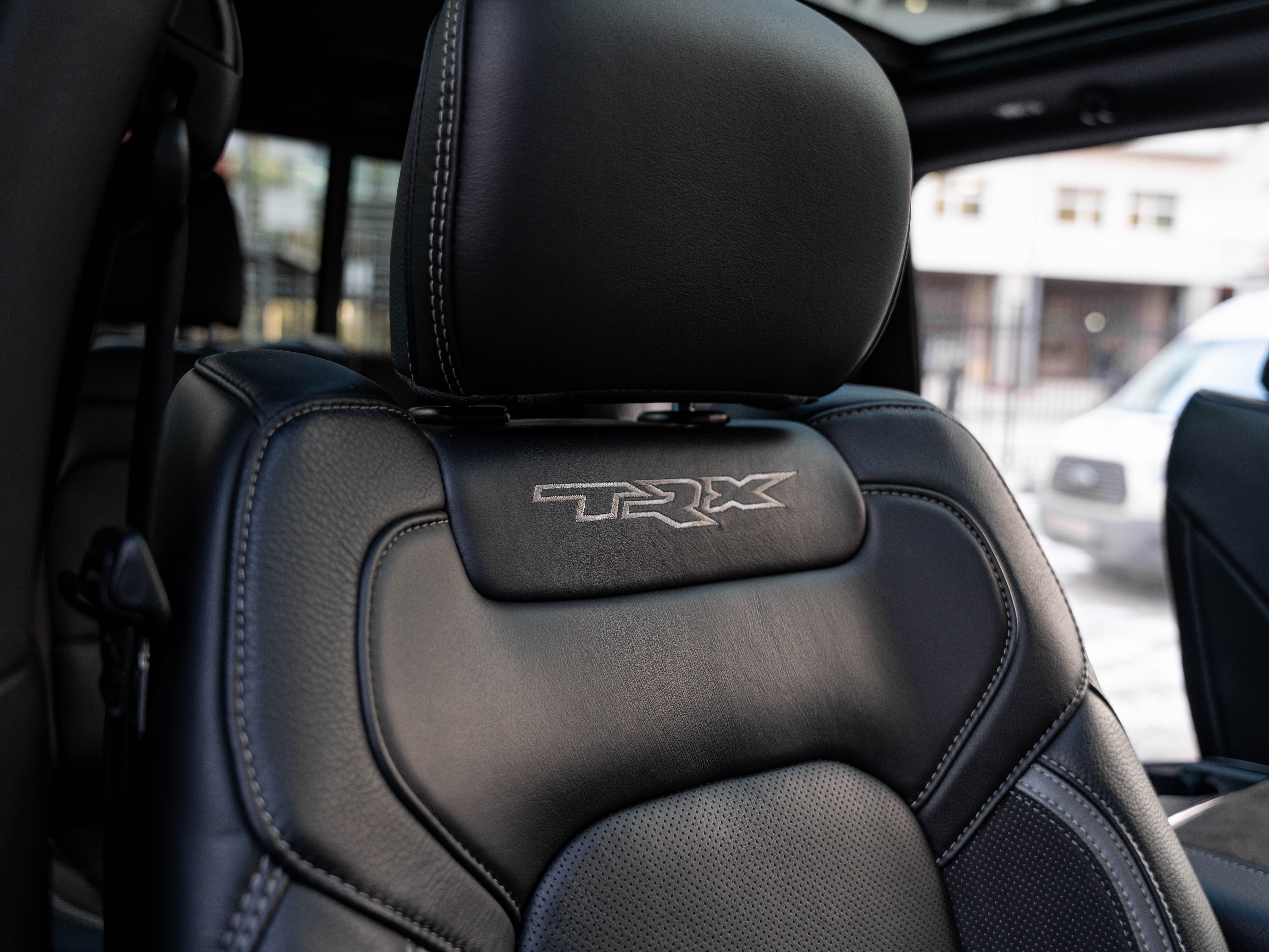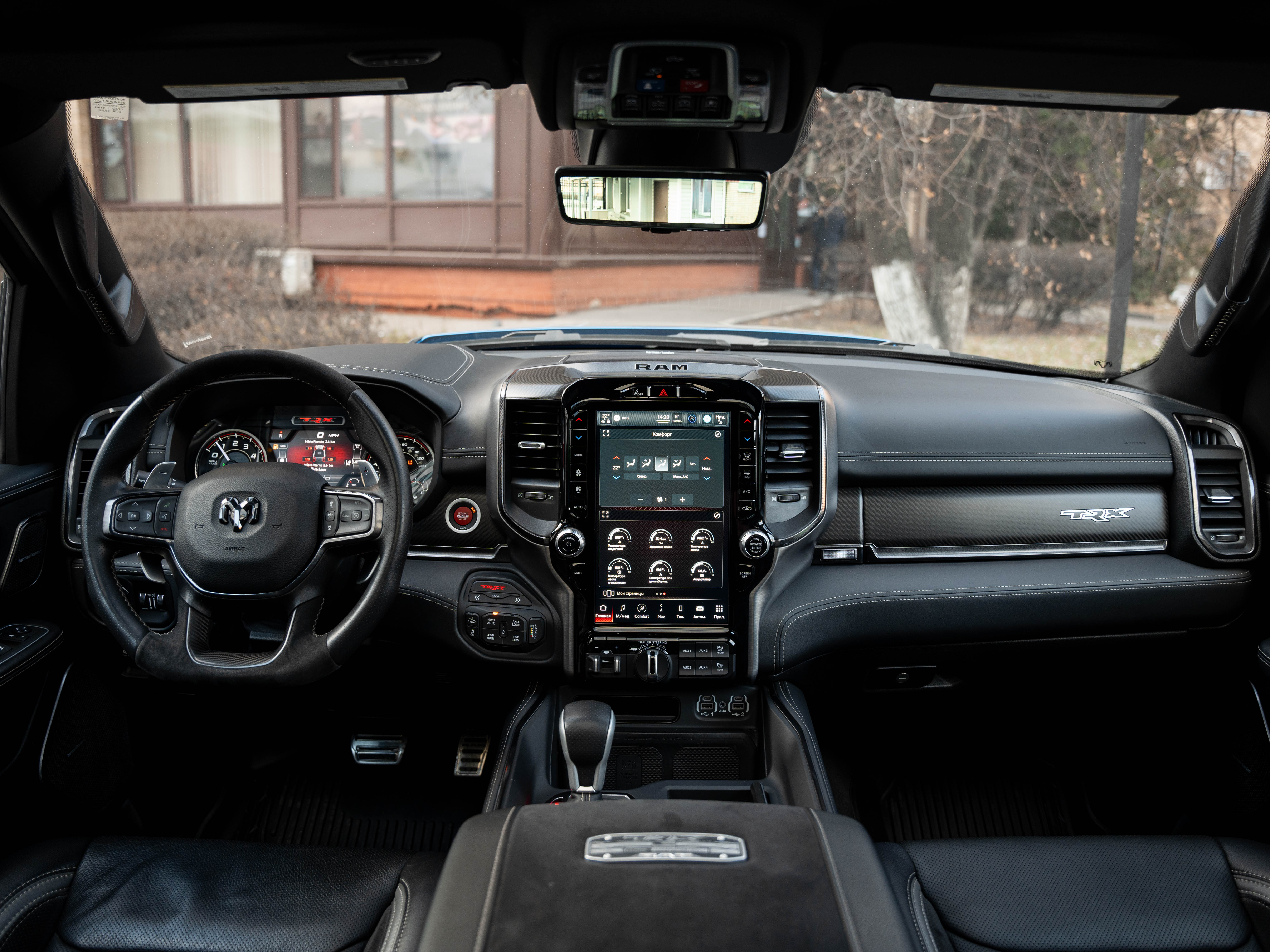 Комплектация: 1500 TRX 6.2 литра Hellcat V8 с компрессором, переключатель режимов движения, система управления тормозами прицепа, блокировка дифференциала, проекционный дисплей, система помощи при спуске, адаптивный круиз-контроль, система мониторинга слепых зон, система управления дальним светом, система контроля давления в шинах, камера 360, зеркало заднего вида с камерой, Apple CarPlay, 2-зонный климат-контроль, память расположения сиденья водителя, руль с подогревом, вентиляция и подогрев всех сидений, аудиосистема harman/kardon, панорама, чёрный потолок, Rambar и многое другое.