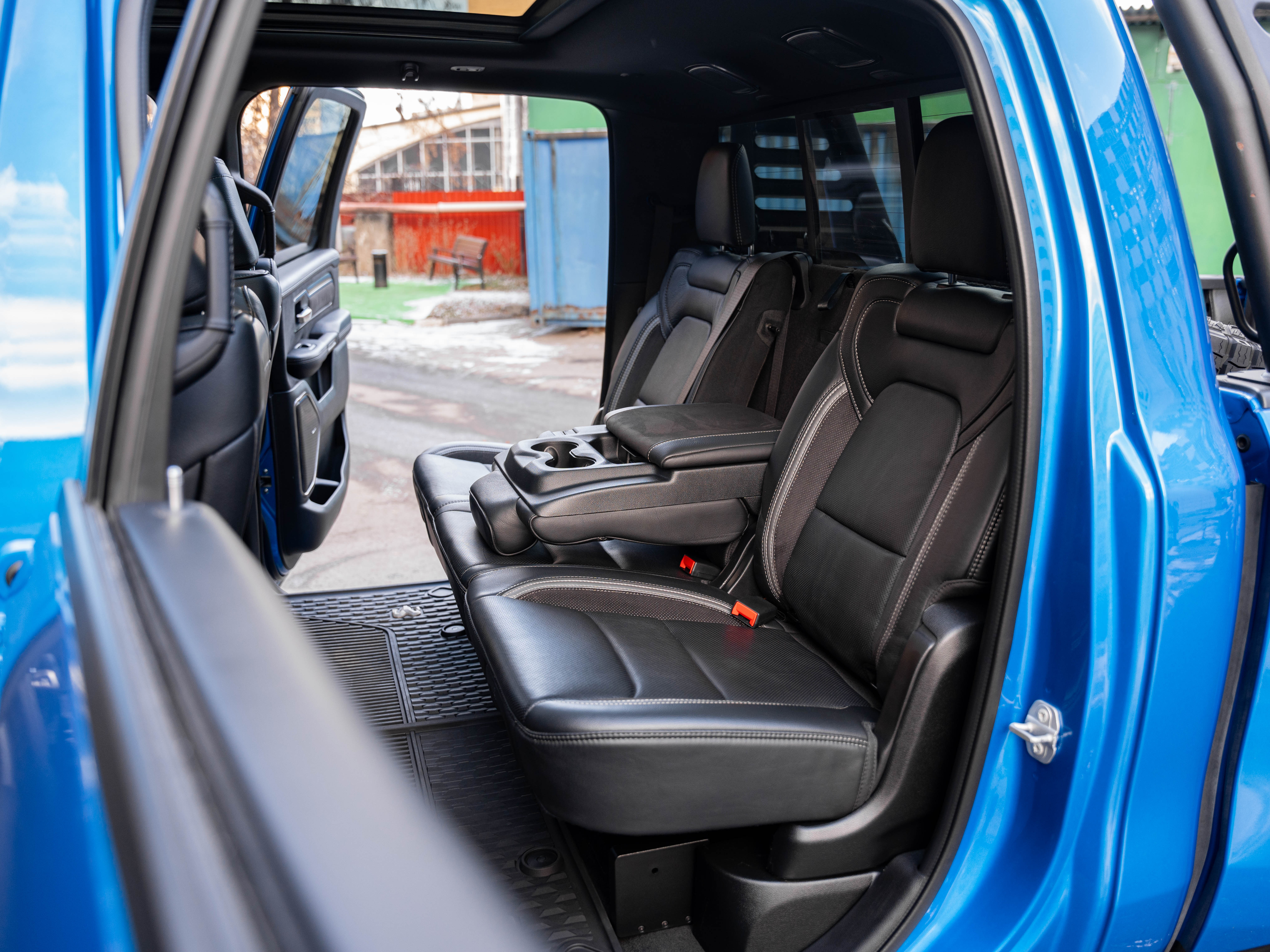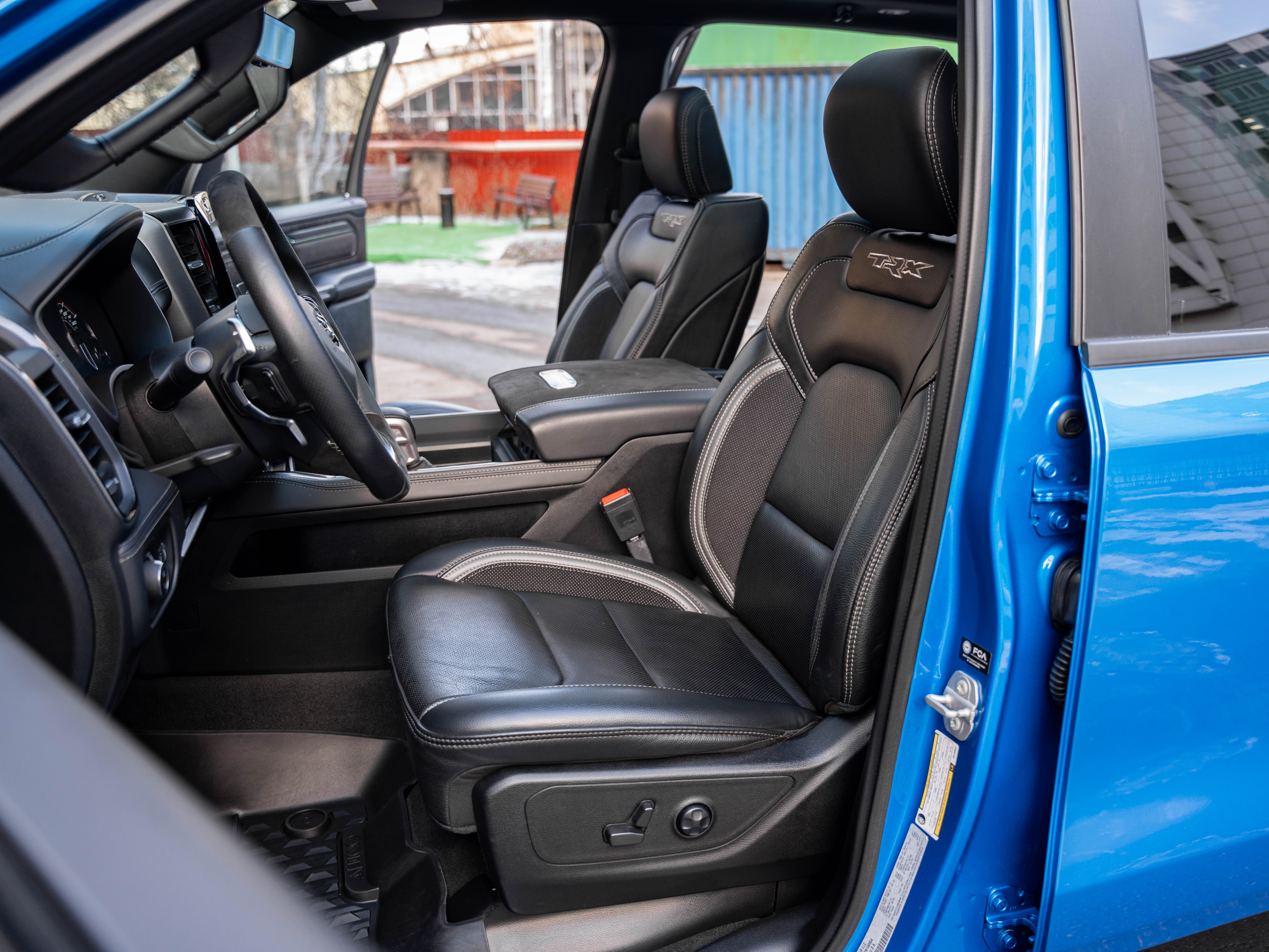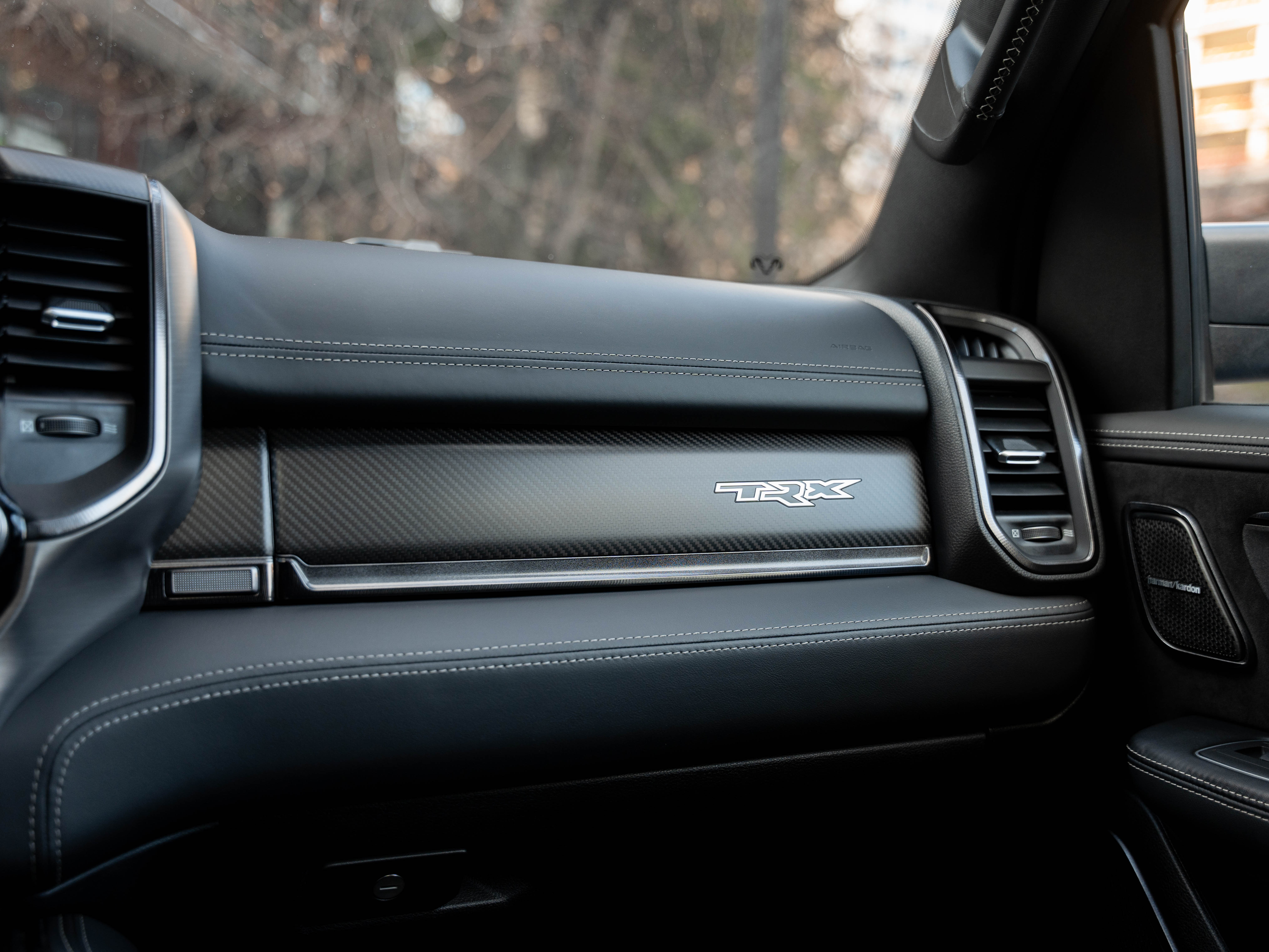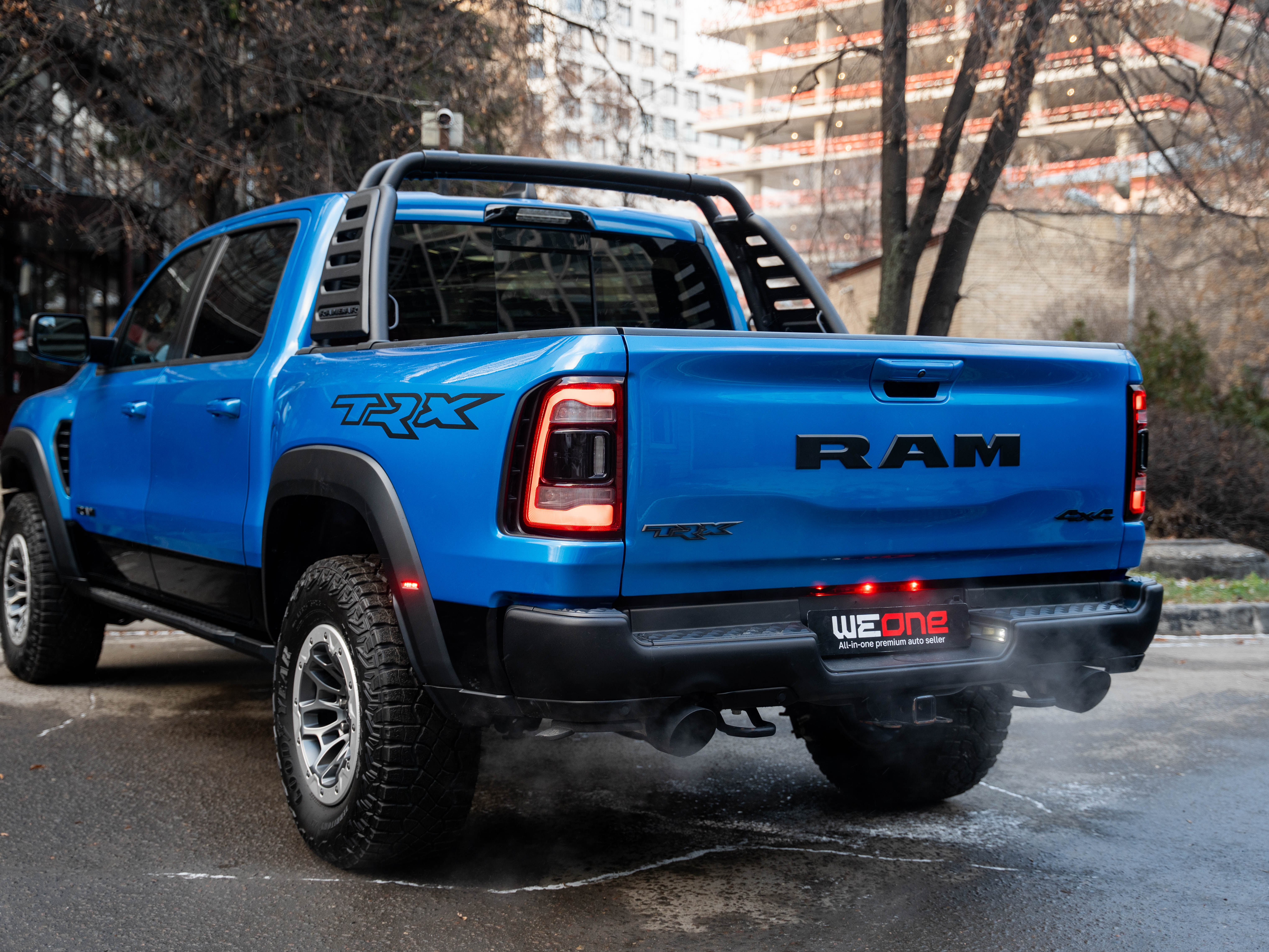 Комплектация: 1500 TRX 6.2 литра Hellcat V8 с компрессором, переключатель режимов движения, система управления тормозами прицепа, блокировка дифференциала, проекционный дисплей, система помощи при спуске, адаптивный круиз-контроль, система мониторинга слепых зон, система управления дальним светом, система контроля давления в шинах, камера 360, зеркало заднего вида с камерой, Apple CarPlay, 2-зонный климат-контроль, память расположения сиденья водителя, руль с подогревом, вентиляция и подогрев всех сидений, аудиосистема harman/kardon, панорама, чёрный потолок, Rambar и многое другое.