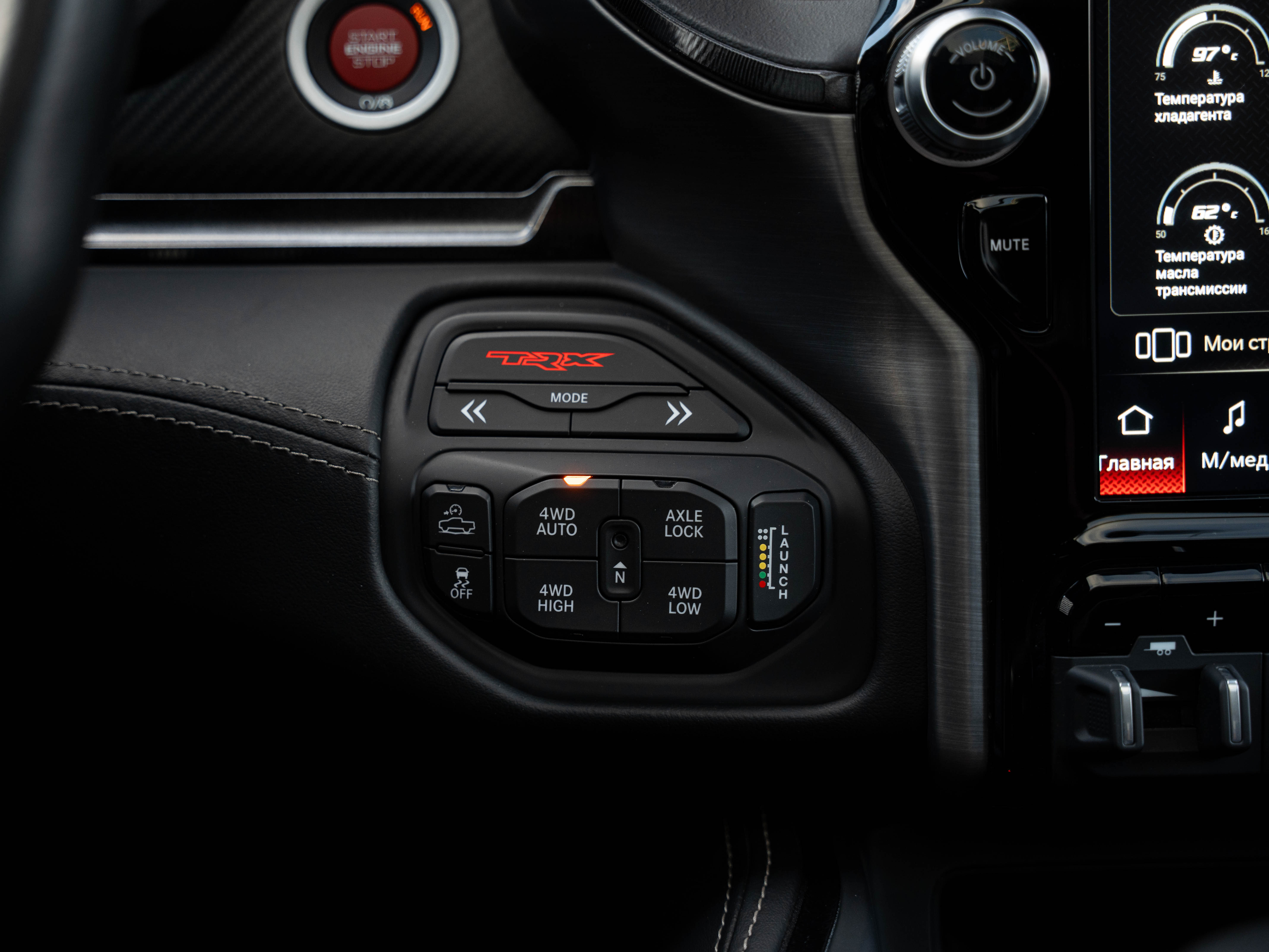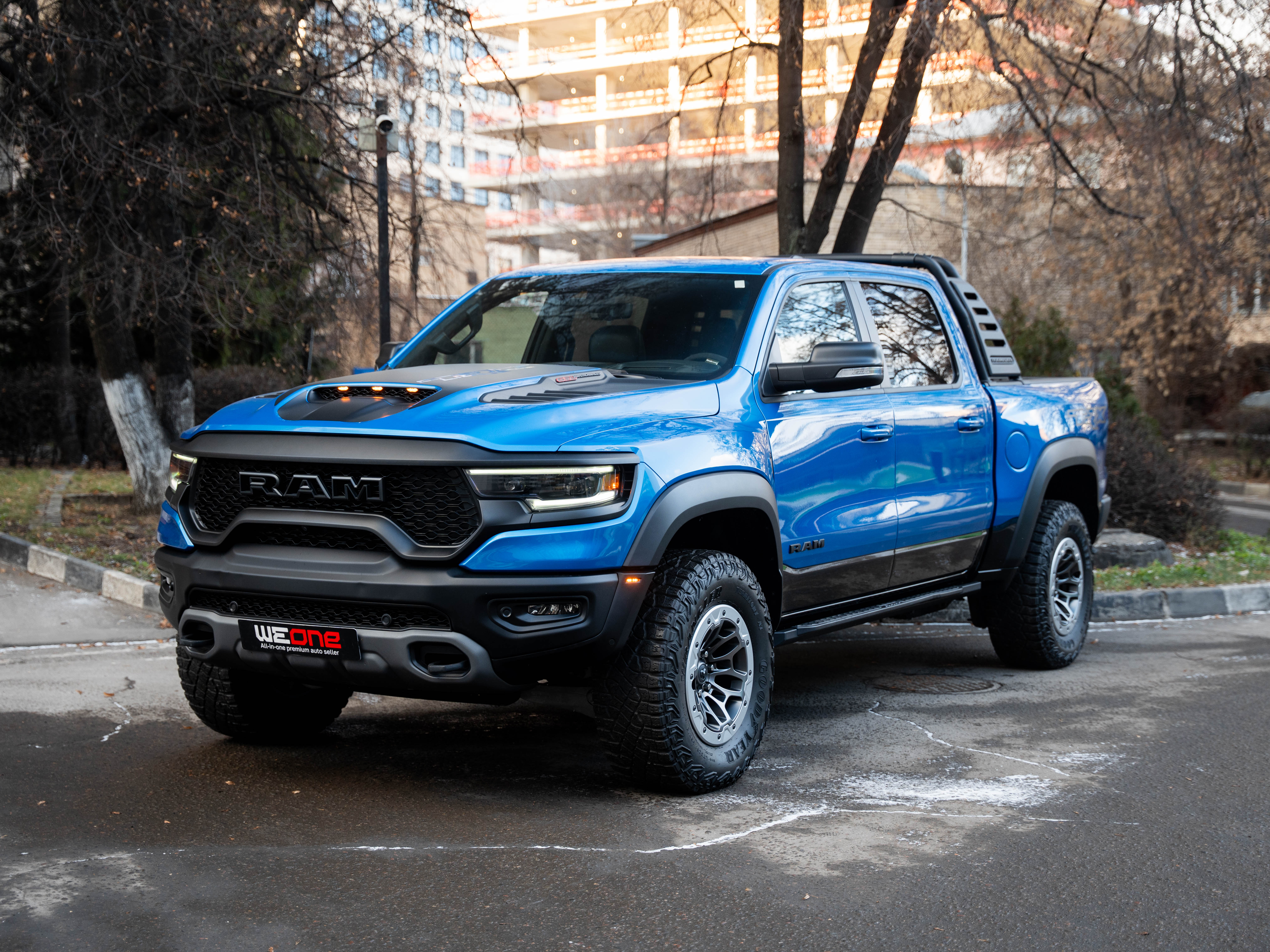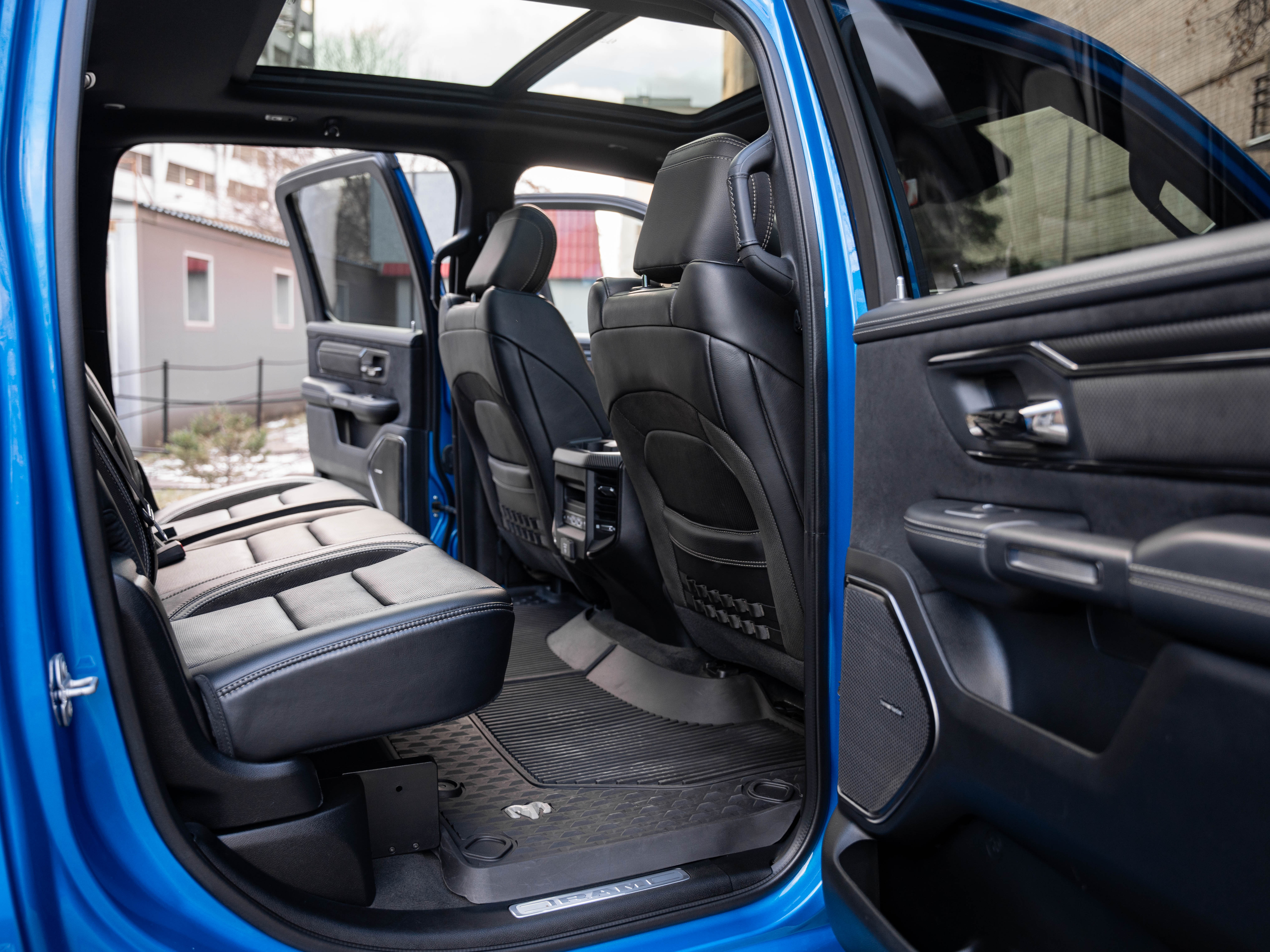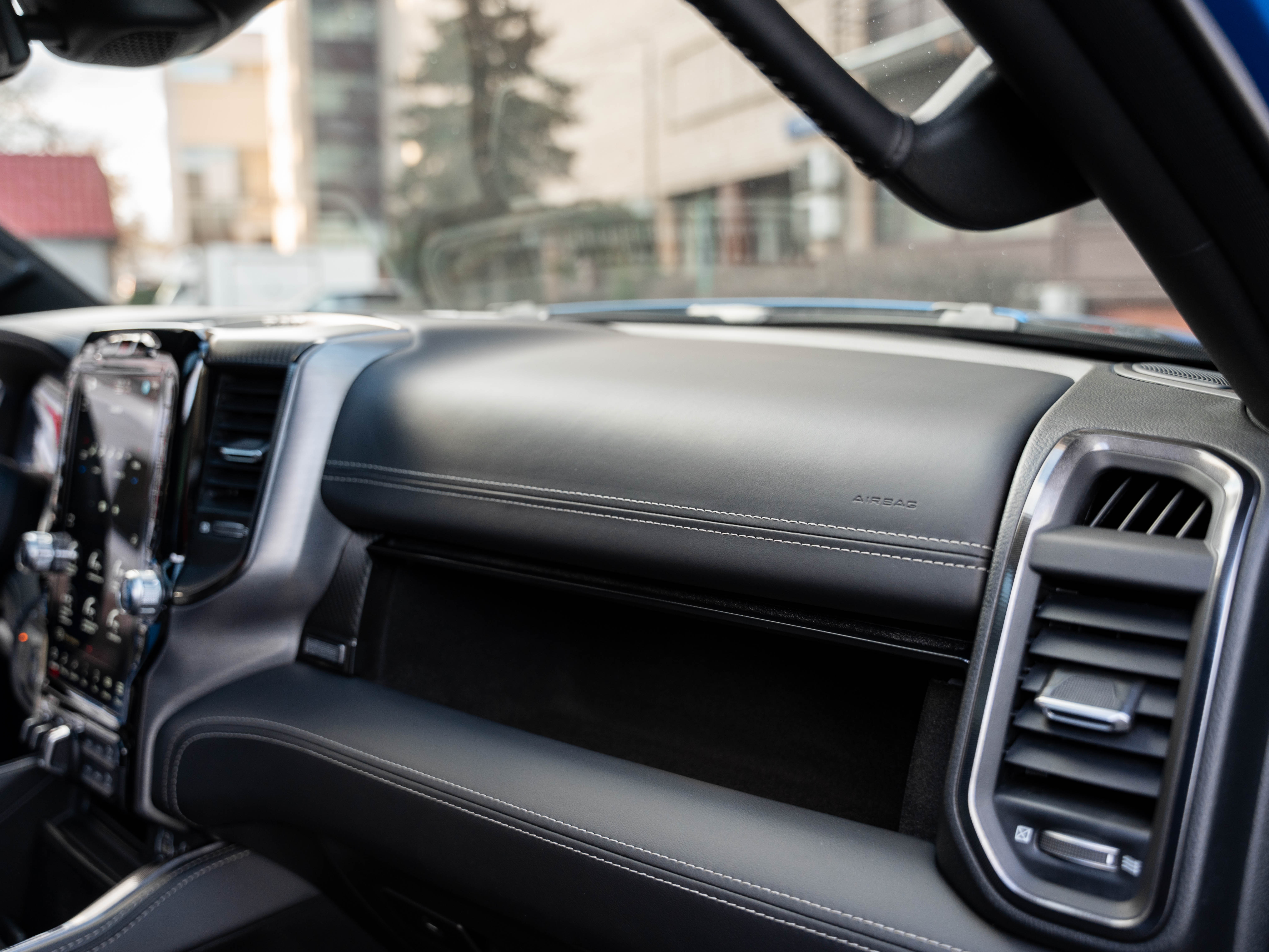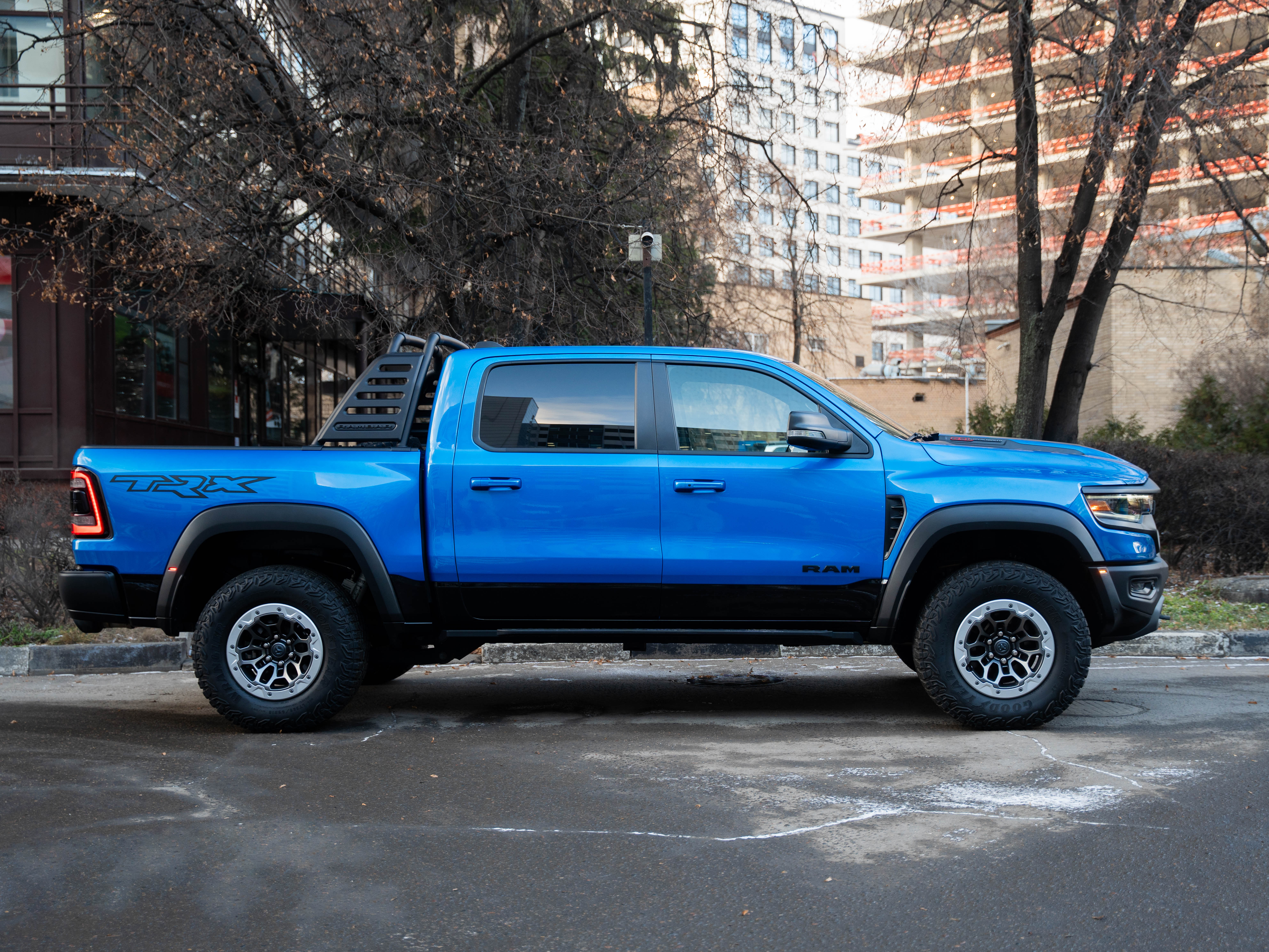 Комплектация: 1500 TRX 6.2 литра Hellcat V8 с компрессором, переключатель режимов движения, система управления тормозами прицепа, блокировка дифференциала, проекционный дисплей, система помощи при спуске, адаптивный круиз-контроль, система мониторинга слепых зон, система управления дальним светом, система контроля давления в шинах, камера 360, зеркало заднего вида с камерой, Apple CarPlay, 2-зонный климат-контроль, память расположения сиденья водителя, руль с подогревом, вентиляция и подогрев всех сидений, аудиосистема harman/kardon, панорама, чёрный потолок, Rambar и многое другое.