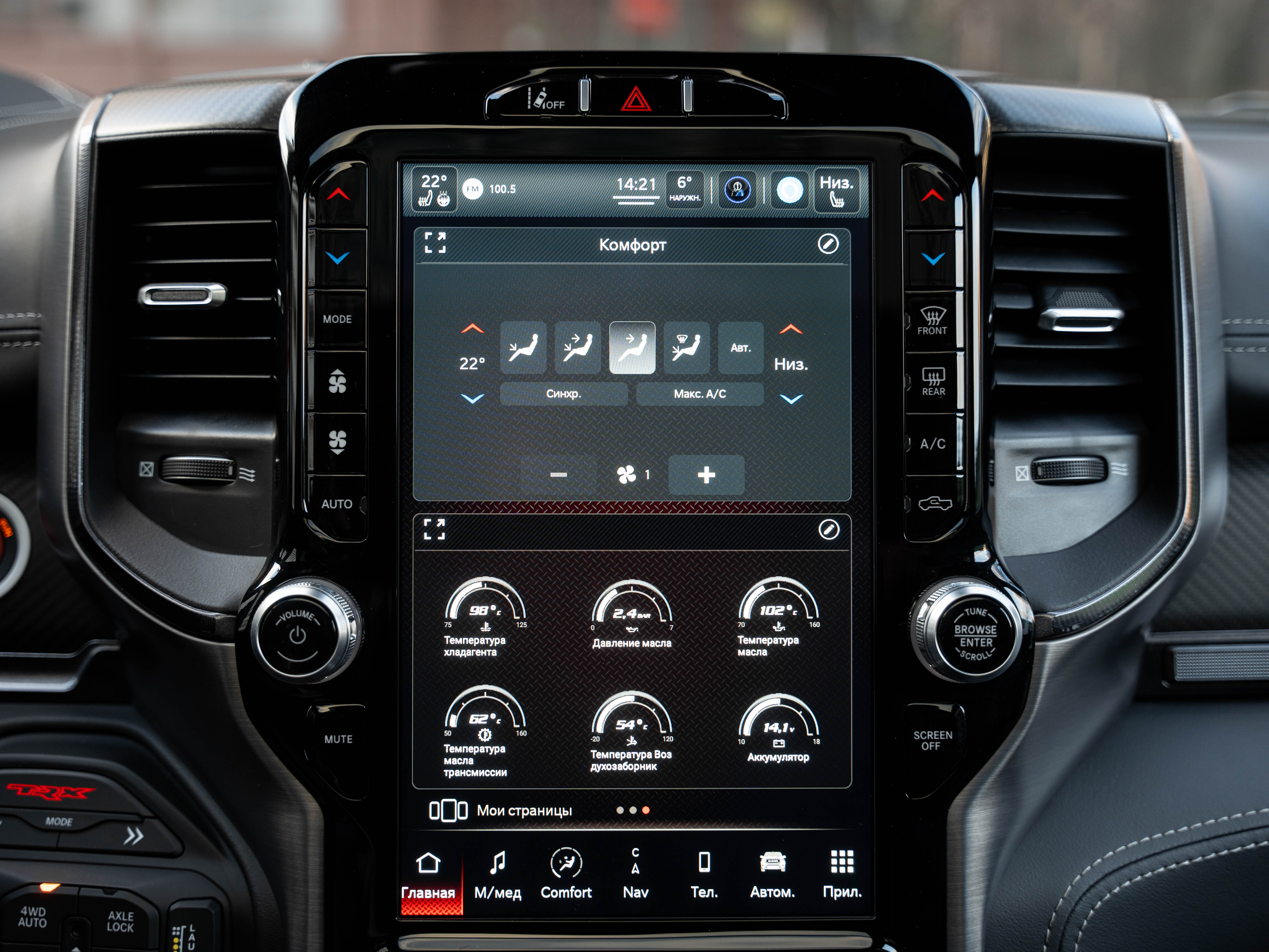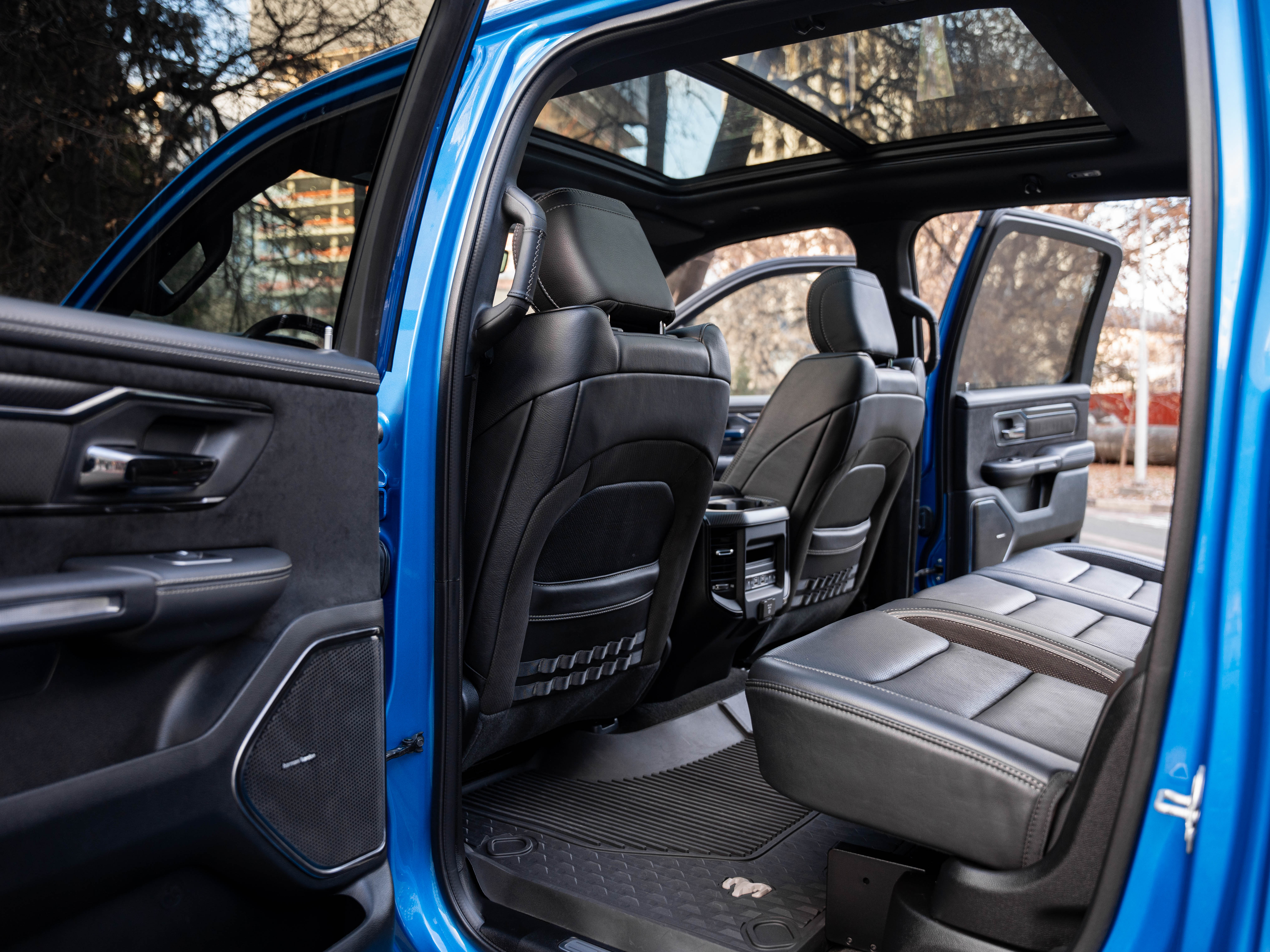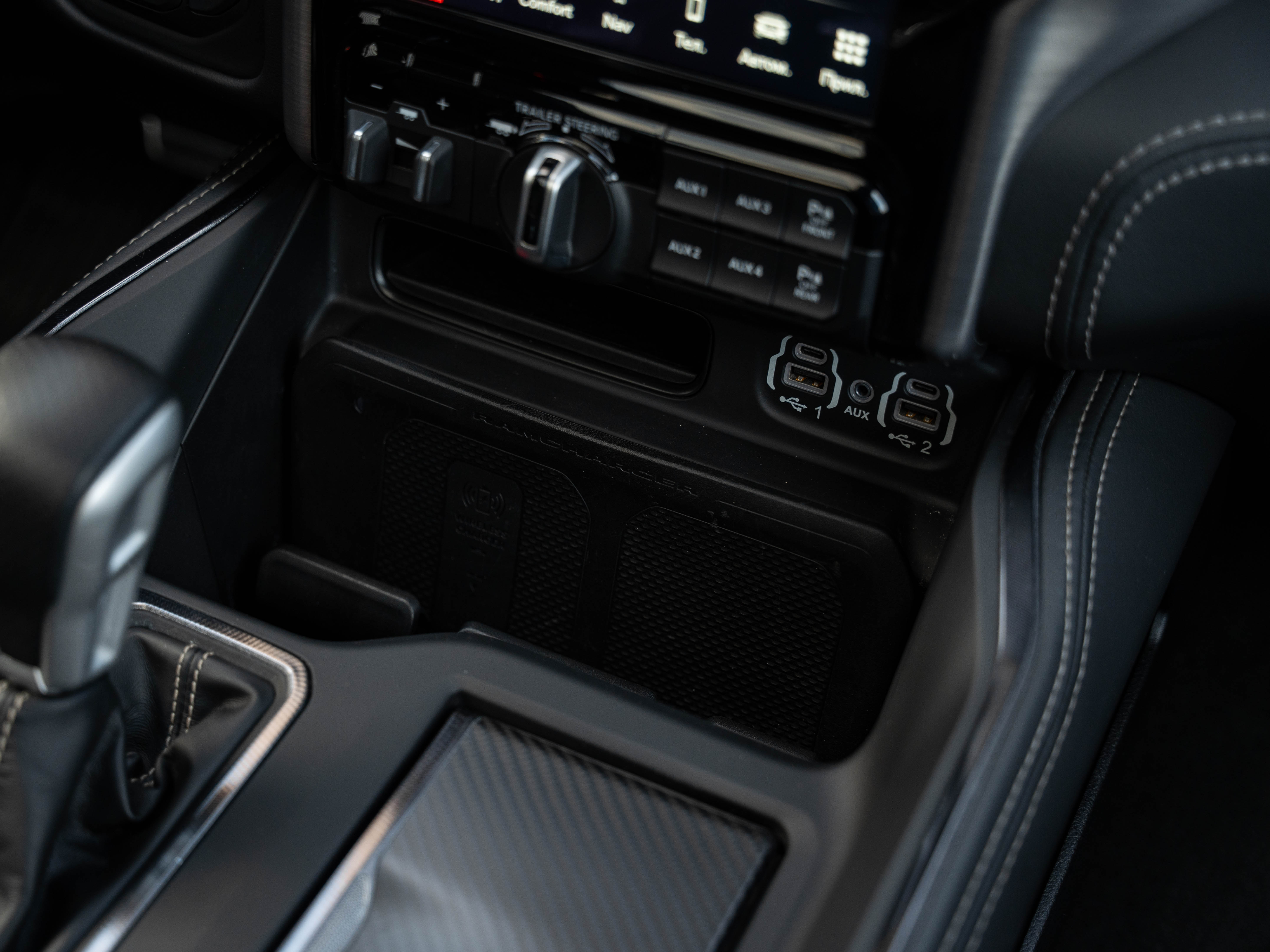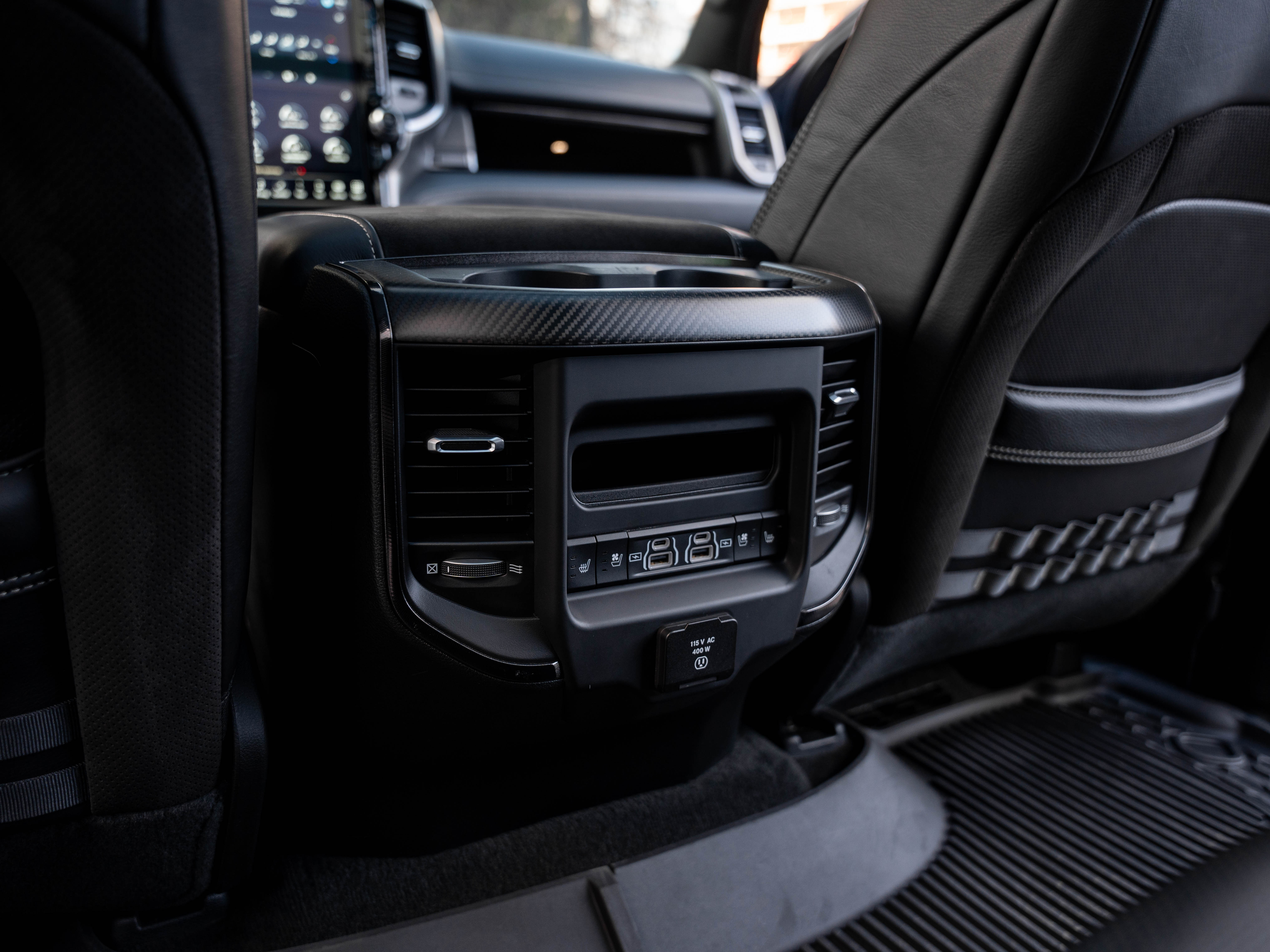 Комплектация: 1500 TRX 6.2 литра Hellcat V8 с компрессором, переключатель режимов движения, система управления тормозами прицепа, блокировка дифференциала, проекционный дисплей, система помощи при спуске, адаптивный круиз-контроль, система мониторинга слепых зон, система управления дальним светом, система контроля давления в шинах, камера 360, зеркало заднего вида с камерой, Apple CarPlay, 2-зонный климат-контроль, память расположения сиденья водителя, руль с подогревом, вентиляция и подогрев всех сидений, аудиосистема harman/kardon, панорама, чёрный потолок, Rambar и многое другое.