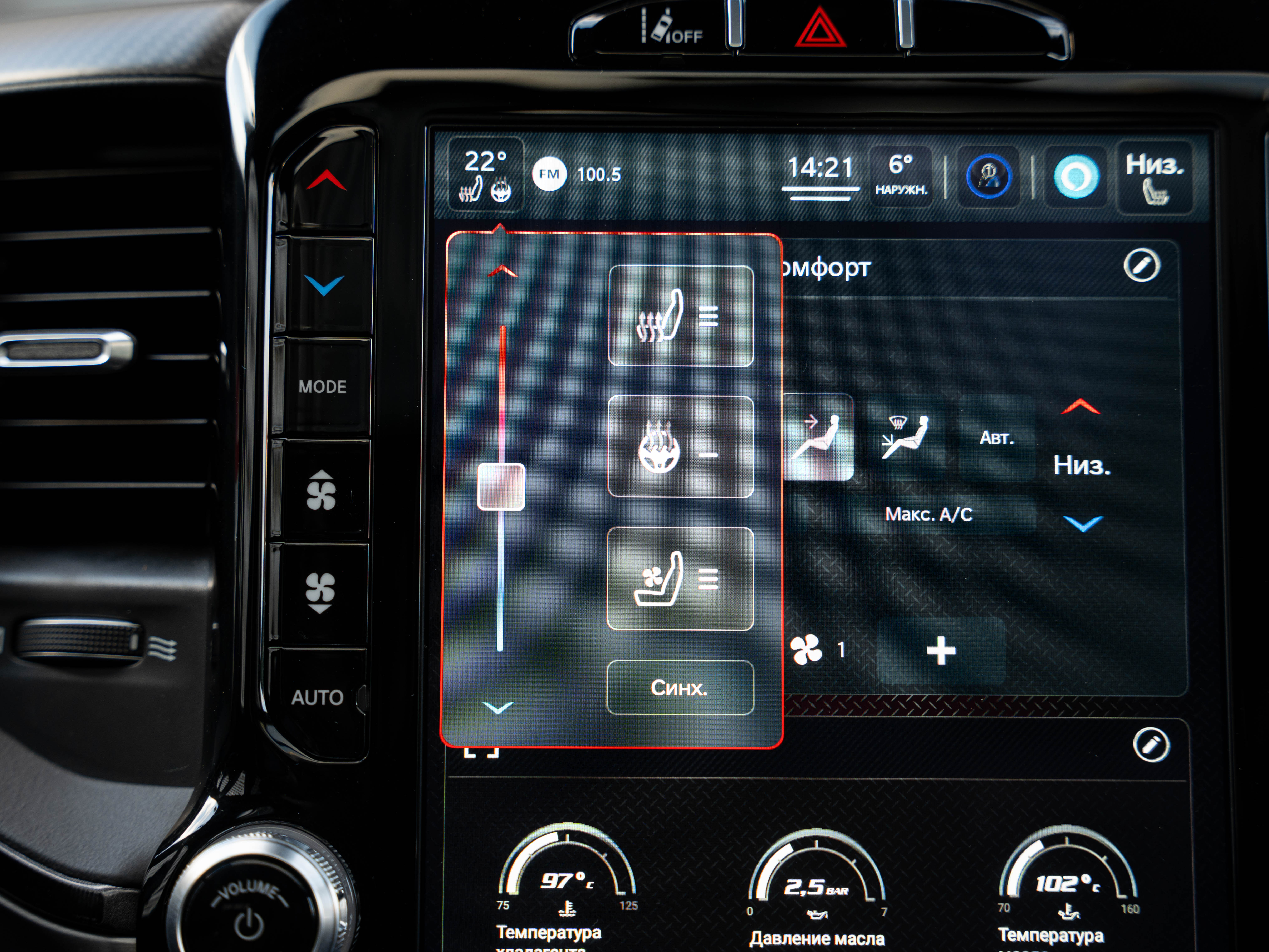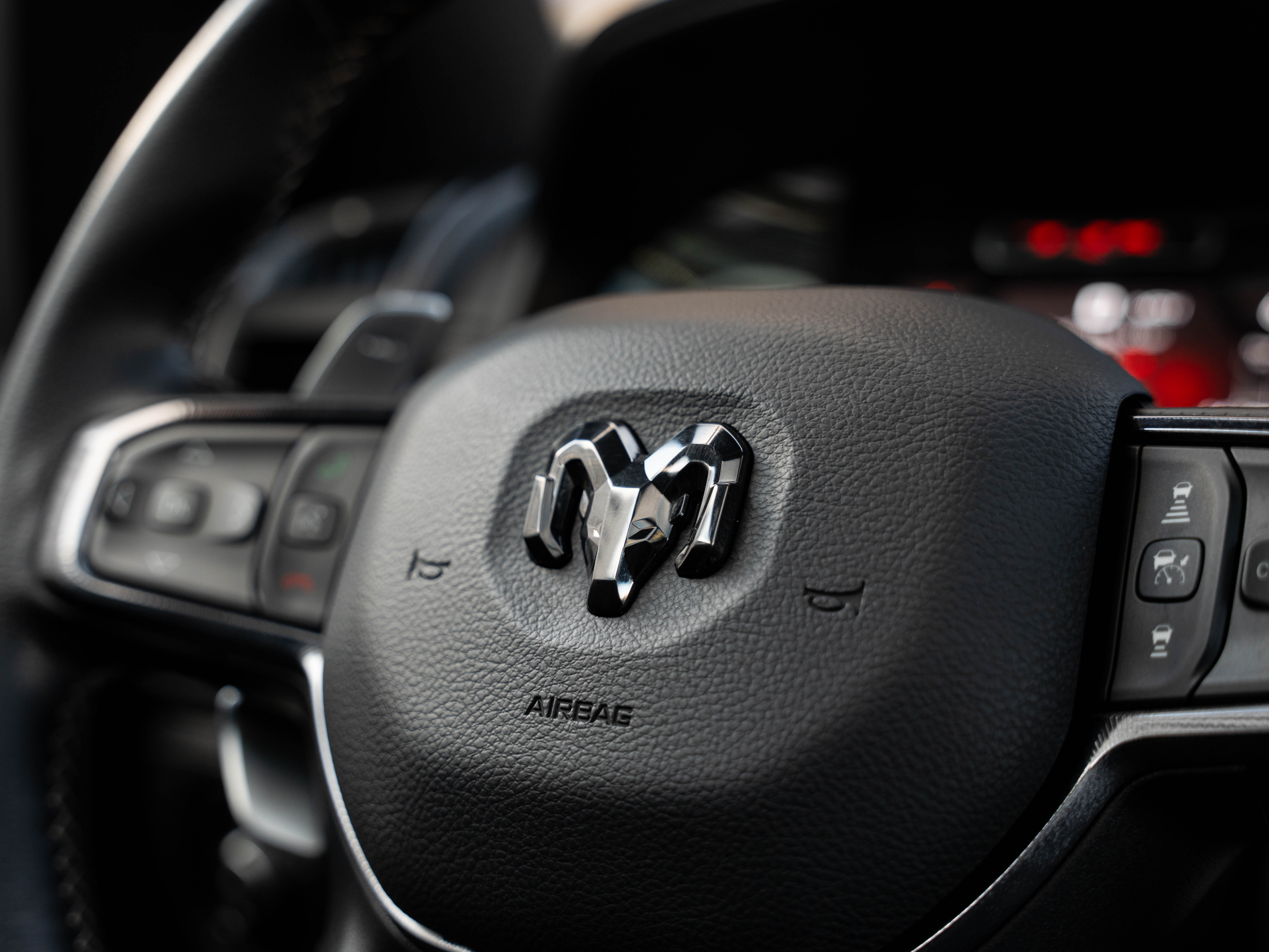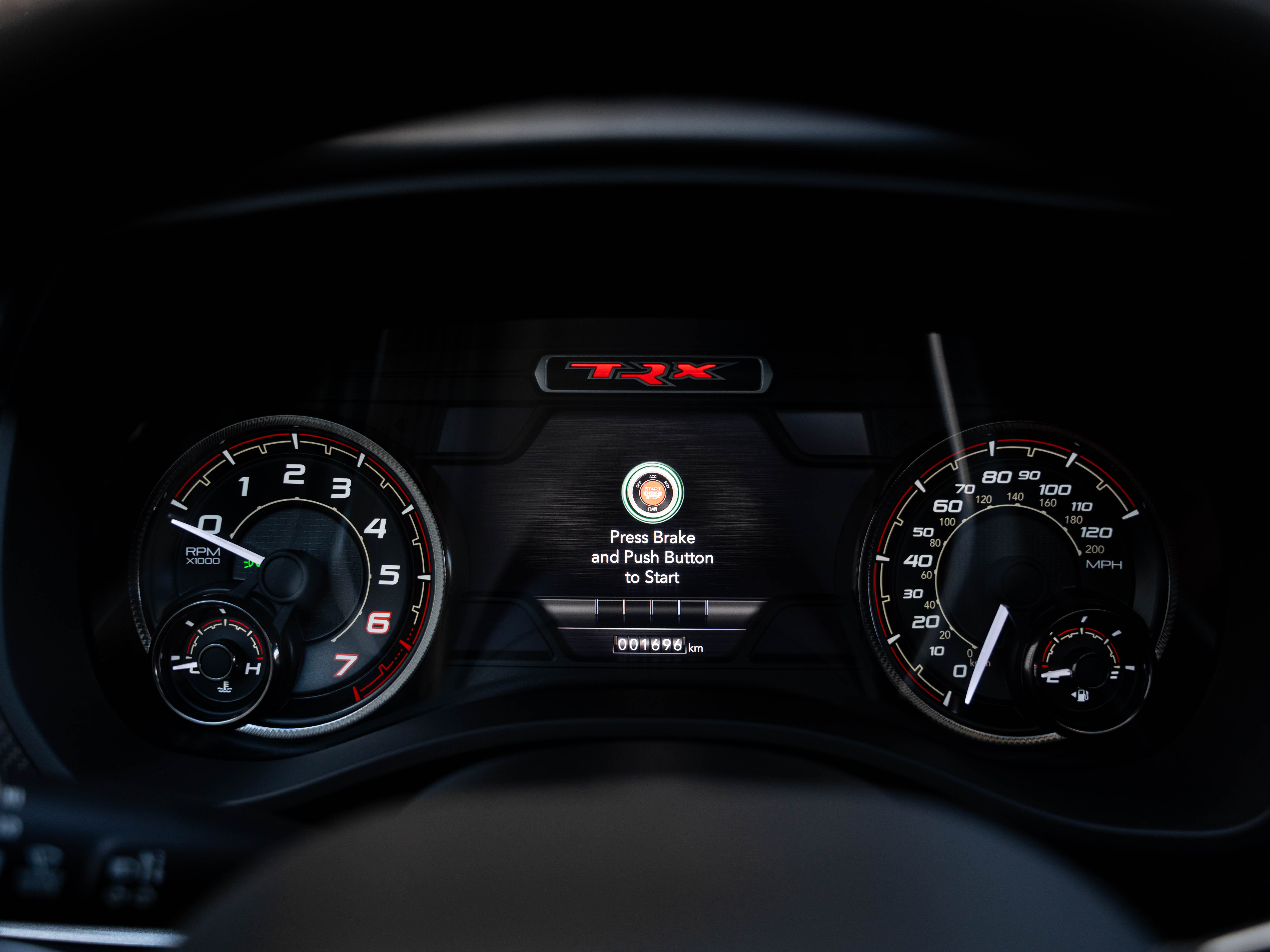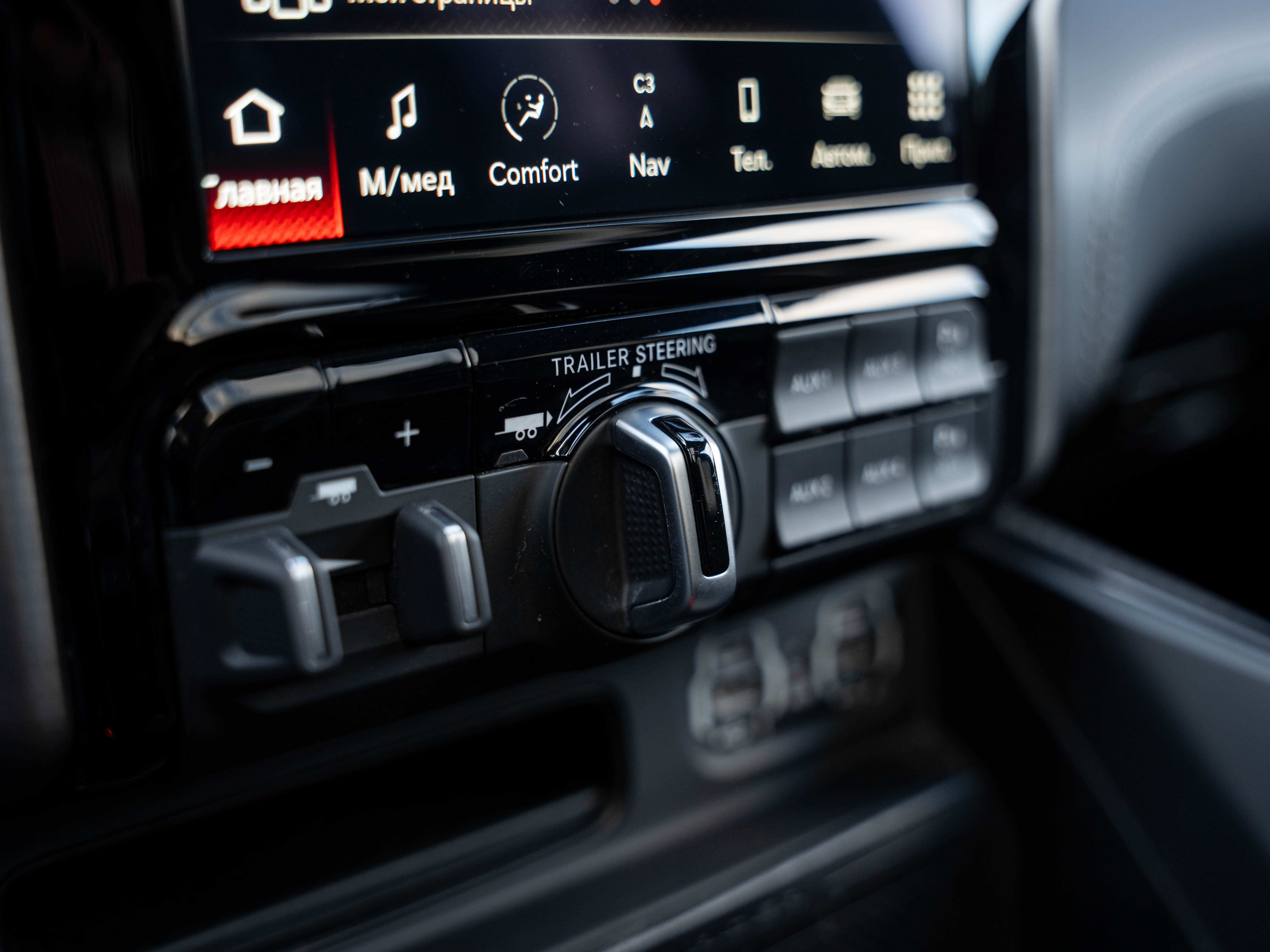 Комплектация: 1500 TRX 6.2 литра Hellcat V8 с компрессором, переключатель режимов движения, система управления тормозами прицепа, блокировка дифференциала, проекционный дисплей, система помощи при спуске, адаптивный круиз-контроль, система мониторинга слепых зон, система управления дальним светом, система контроля давления в шинах, камера 360, зеркало заднего вида с камерой, Apple CarPlay, 2-зонный климат-контроль, память расположения сиденья водителя, руль с подогревом, вентиляция и подогрев всех сидений, аудиосистема harman/kardon, панорама, чёрный потолок, Rambar и многое другое.