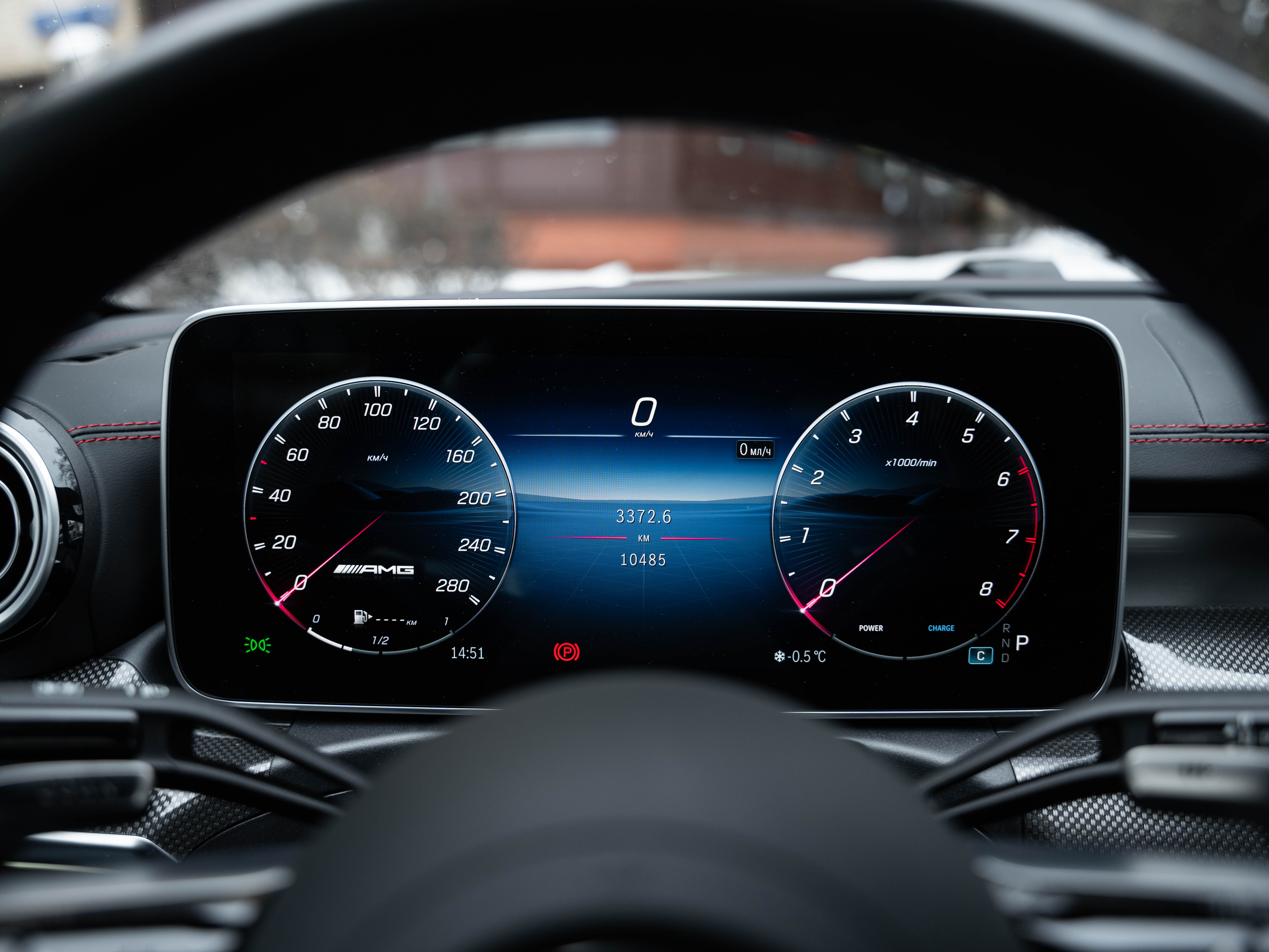 Комплектация: Дизайн AMG, внутренняя линия AMG Entry Performance, рулевое колесо AMG из кожи наппа, кнопки на рулевом колесе AMG (AMG Drive Unit), приборная панель и поясная линия отделаны кожей, цифровые светодиодные фары, подвеска с регулируемым демпфированием, адаптивный круиз-контроль Plus (DISTRONIC PLUS), аудиосистема Burmester, климатизированные передние сиденья, нагрев в области головы, рулевое колесо с подогревом, электрически регулируемое водительское сиденье с функцией памяти, камера 360°, диски AMG с двумя спицами, 20 дюймов, «смешанные шины», мультимедийная система MBUX Premium, пакет интеграции со смартфоном, проекционный дисплей, управление задней осью, система активного удержания в полосе, бесключевой доступ, освещение премиум-класса плюс атмосфера, выбираемый звук двигателя и многое другое.