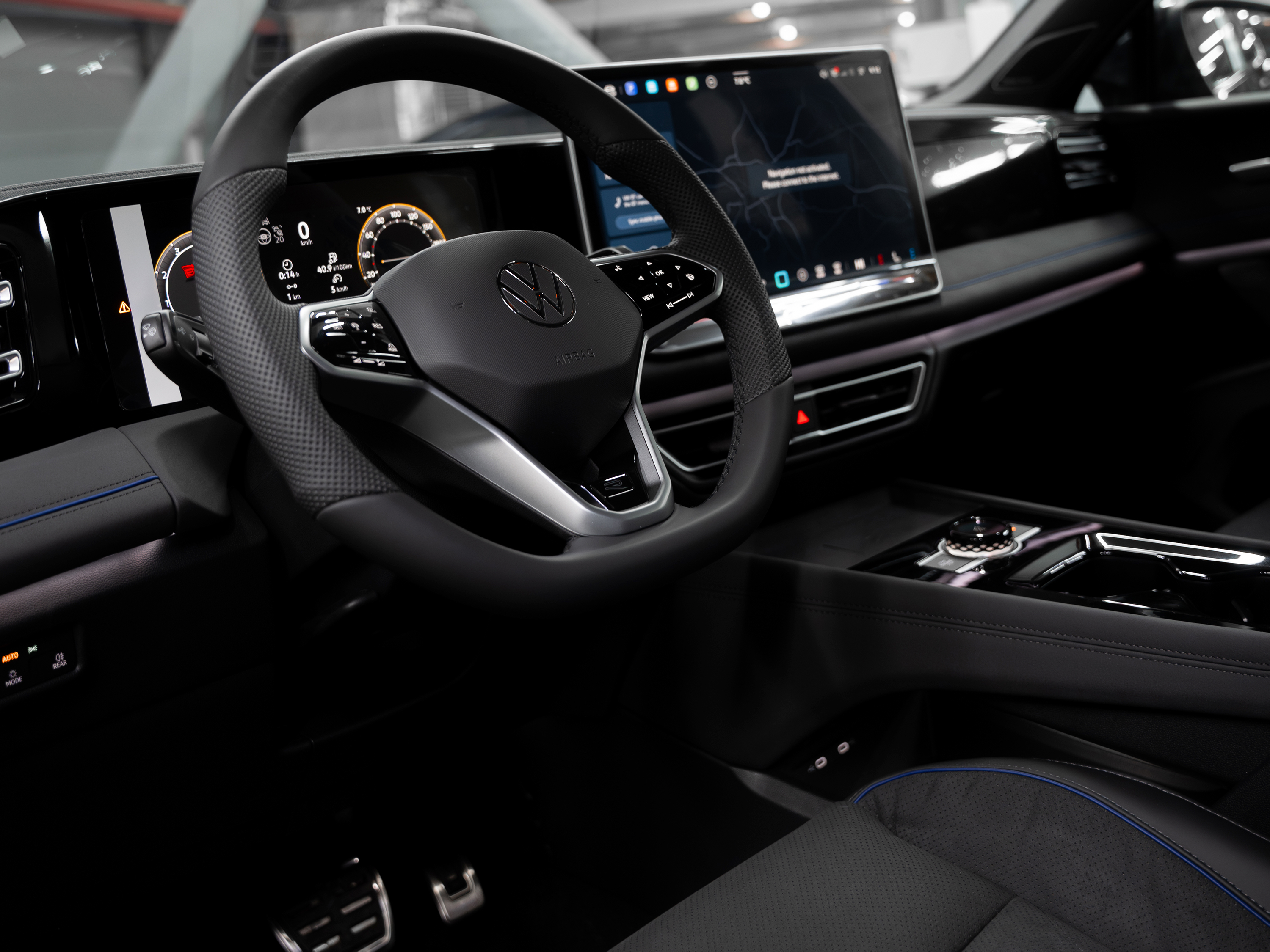 Комплектация: R-Line Premium Edition 380TSI 7AT 4WD, черный стайлинг пакет, обивка сидений из перфорированной кожи/алькантары адаптивный круиз – контроль, интеллектуальная автомобильная информационно-развлекательная система: 15-дюймовый цветной сенсорный дисплей 2K, чип Qualcomm 8155, 12 Гб оперативной памяти, 128 Гб встроенной памяти, беспроводная зарядка мобильного телефона 15 Вт зимний пакет (Подогревы сидений, подогрев руля), передние сиденья с электрическими регулировками в 8 направлениях с памятью, массаж и вентиляция передних сидений, 3-зонный климат-контроль "Climatronic" с антиаллергенным фильтром, проекция на лобовое стекло, функция Apple CarPlay, камеры кругового обзора 360 градусов, IQ LED оптика, панорамная крыша со сдвижным люком, аудиосистема Harman/Kardon, колесные диски R20, бесключевой доступ и многое другое.