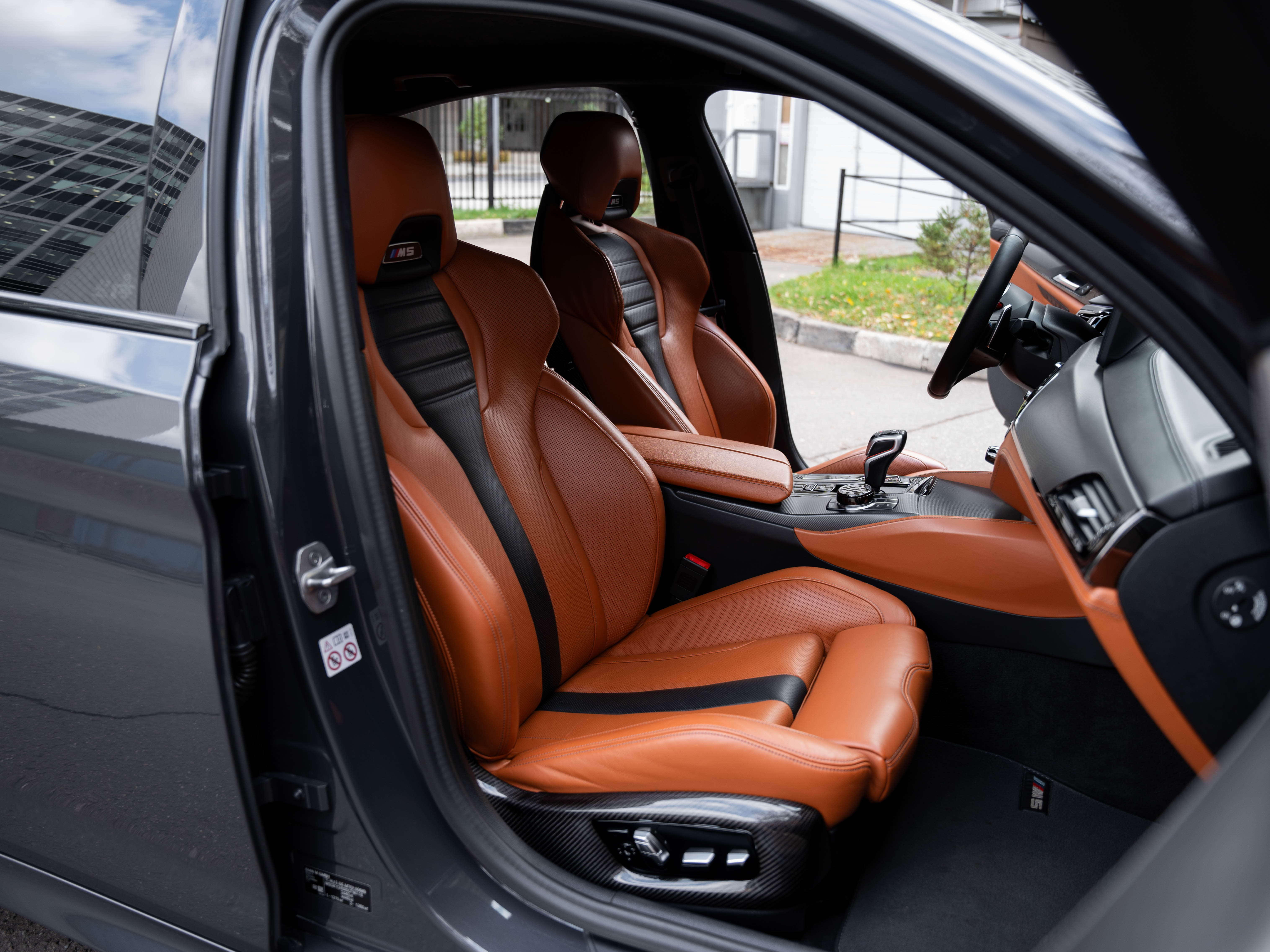 Цвет салона: Коричневый Арагон/Черный, полная отделка кожей Merino
