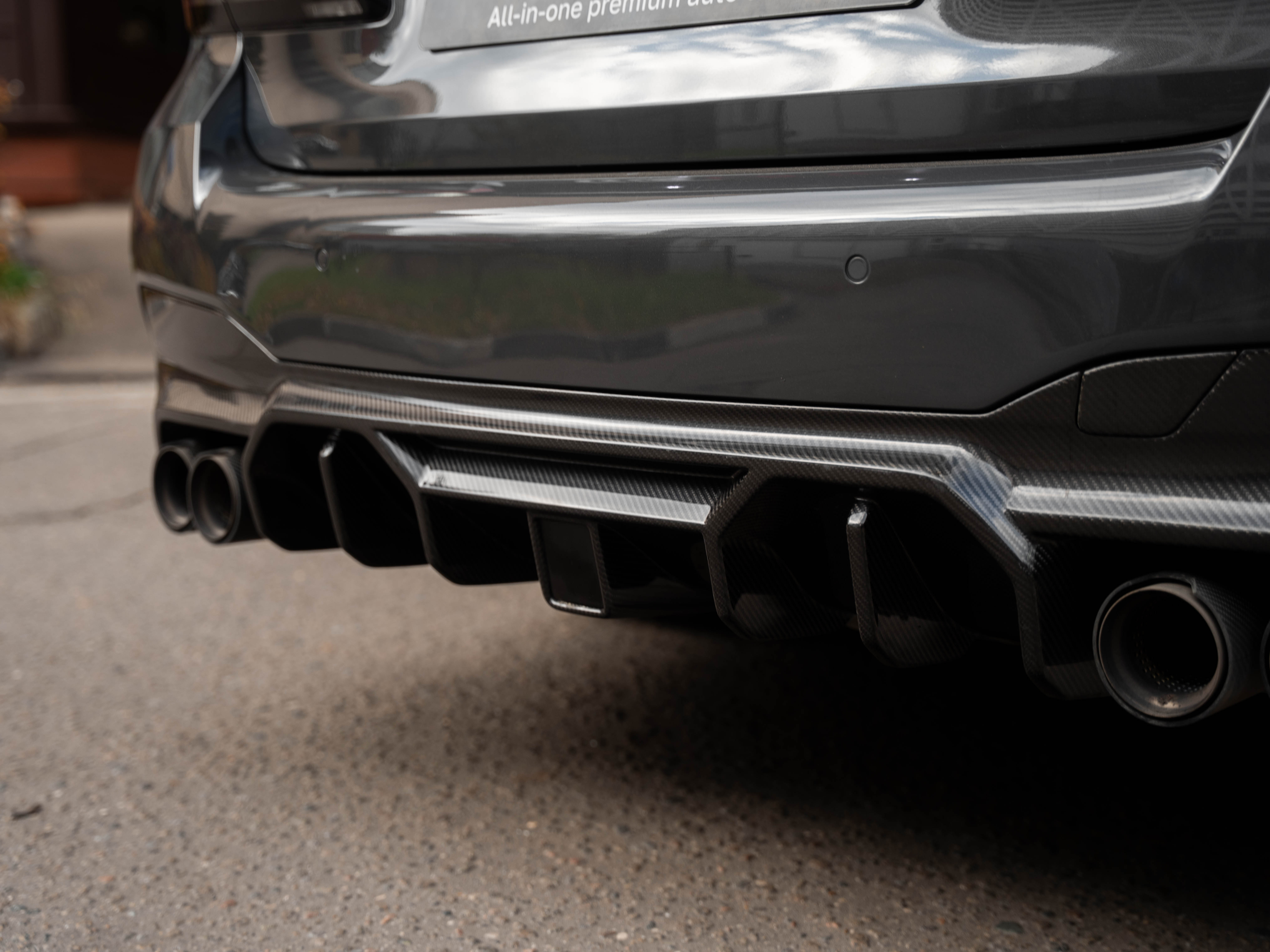 Комплектация: акустическая система объемного звучания Bowers & Wilkins Diamond, отделка потолка алькантарой черного цвета, многофункциональные сиденья М с функцией вентиляции и массажа, ассистент вождения Professional, BMW Individual дизайн экстерьера Shadow Line, автоматический климат-контроль 4 зоны, декоративные планки алюминий Carbon structure, карбоновый задний диффузор, карбоновые накладки на выхлопные трубы, доводчики дверей, лазерные фары BMW, проекция на лобовое стекло, подогрев задних сидений, ассистент парковки Plus с 3D изображением, комфортный доступ, дополнительная отделка сидений карбоном,