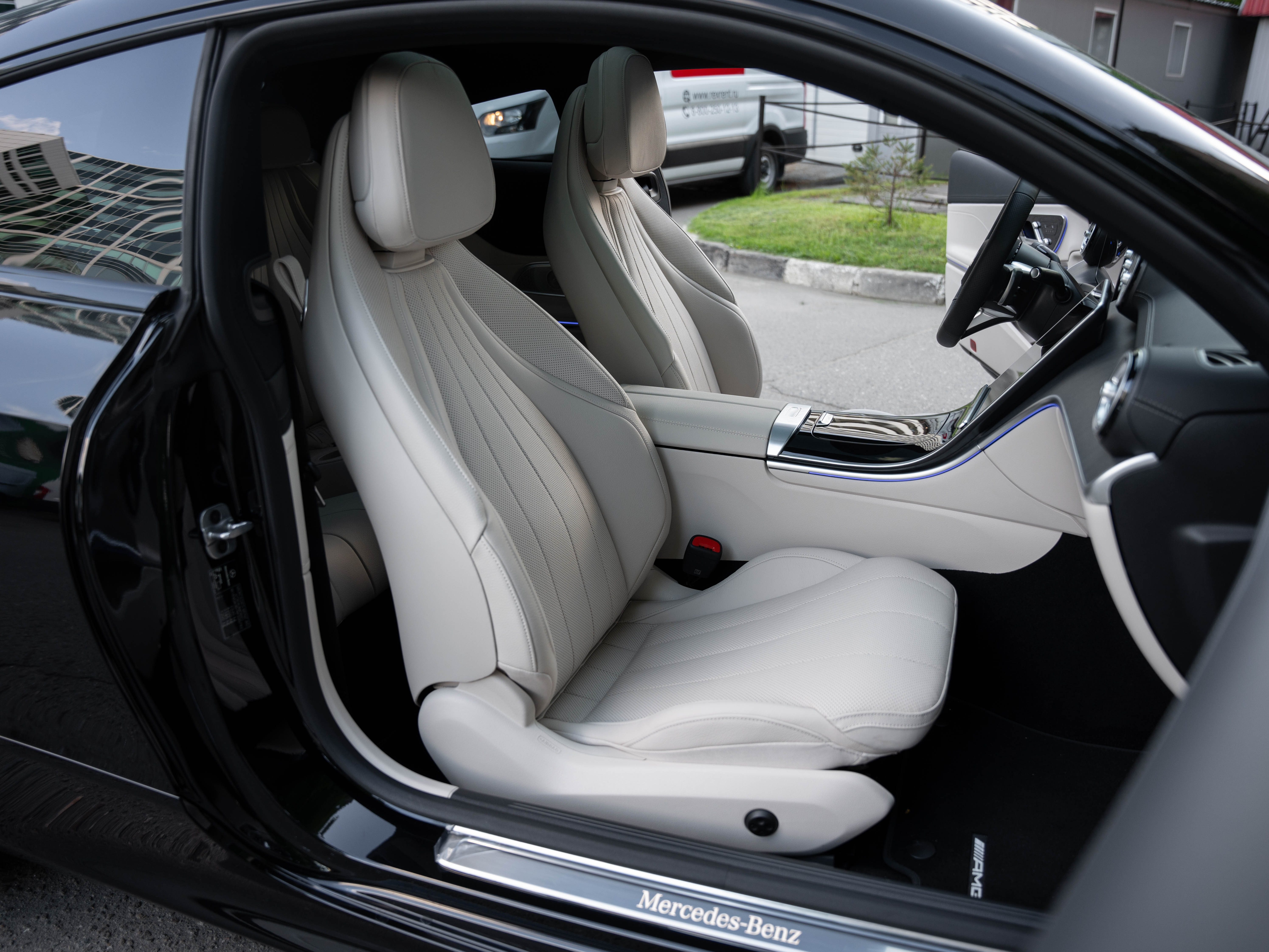 Комплектация: цифровые светодиодные фары, функция Distronic Pro активирована, бесключевой доступ, зимний пакет, проекция, камера 360 °, передние сиденья с подогревом и вентиляцией, система распознавания дорожных знаков, мультимедийная система MBUX Premium, система омывателя ветрового стекла с подогревом, подсветка Premium Plus ambiance, беспроводная зарядка телефона спереди, элементы отделки - дерево Fineline цвета антрацит (2C09), Night пакет, отделка приборной панели и бортовых панелей в коже в стиле наппа подчеркивает высококачественный внешний вид интерьера, аудиосистема Burmester, спортивная подвеска, многоспицевые диски AMG 20 и многое другое.