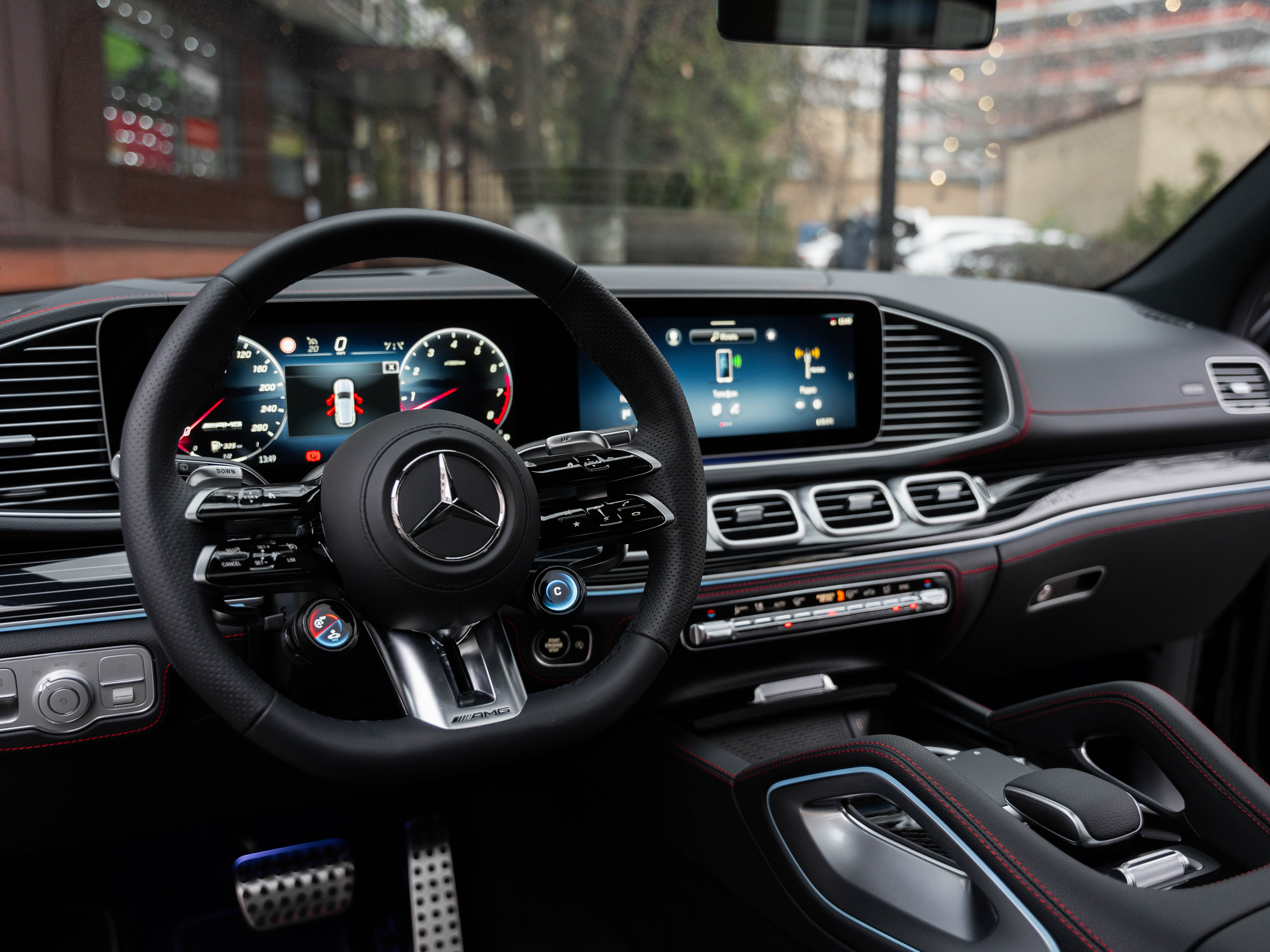 Комплектация: стайлинг Amg, пакет Amg night "экстрьер", колесные диски для Amg со сдвоенными спицами 22", «шины разной ширины», светодиодная фара с динамическим регулированием, airmatic dc / пневмоподвеска полуактивная, деревянные декоративные элементы: «плавающие линии» / рояльный лак (2b81), панель приборов и бортовая кромка с кожаной отделкой, рулевое колесо Amg с отделкой из кожи "наппа", кнопки переключения на рулевом колесе Amg (amg drive unit), проекционный дисплей, система адаптивного демпфирования plus (ads+), панорамная сдвижная панель крыши, бесключевой доступ, серводоводчик, акустическая система класса "премиум" Burmester, пакет интеграции для смартфонов, беспроводная зарядка телефона, система мониторинга "мертвых зон", пакет функций памяти (сиденье водителя, рулевая колонка и зеркала), активная система удержания полосы движения, камера с обзором 360°, подножка с алюминиевой накладкой с резиновым точечным рифлением , тягово-сцепное устройство и многое другое.